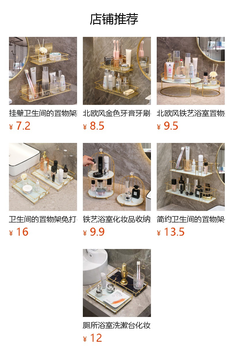 욕실 화장실 수납 선반, 무타공 화장실 벽걸이형 화장품/스킨케어 제품 보관함, 목욕용품 걸이형 철제 선반스토어 가기
