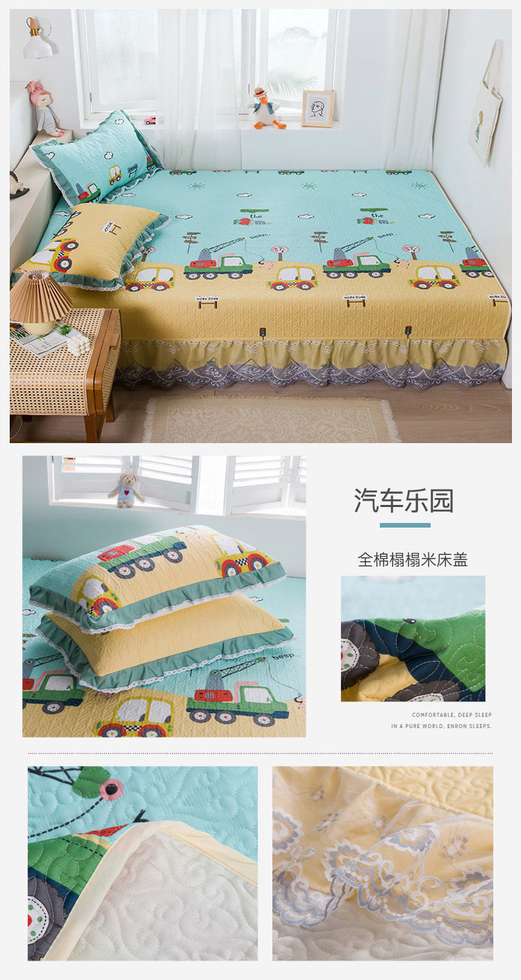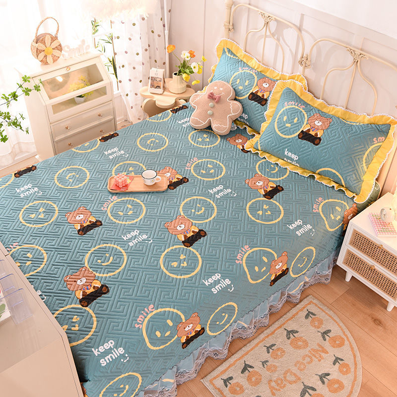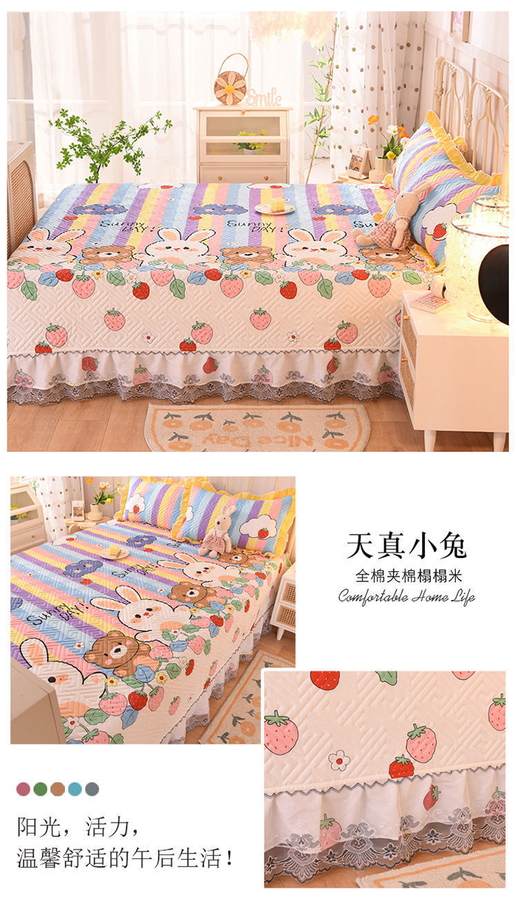 다다미 침대 커버 코튼으로 설정 농촌 큰 강 커버 면 퀼트 침대 시트 면 커버 미끄럼 방지 보호 매트스토어 가기