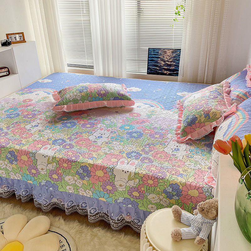다다미 침대 커버 코튼으로 설정 농촌 큰 강 커버 면 퀼트 침대 시트 면 커버 미끄럼 방지 보호 매트