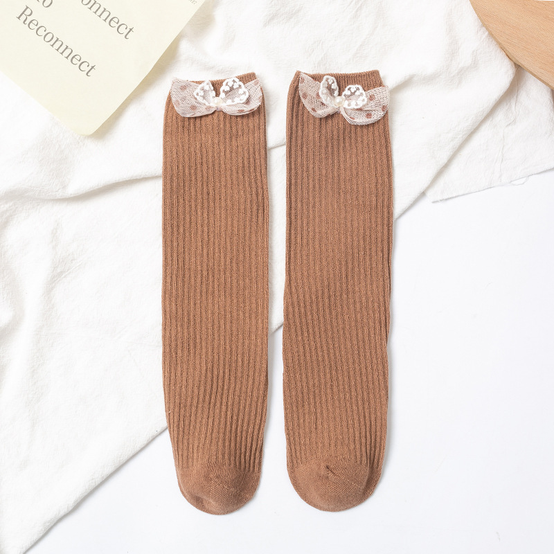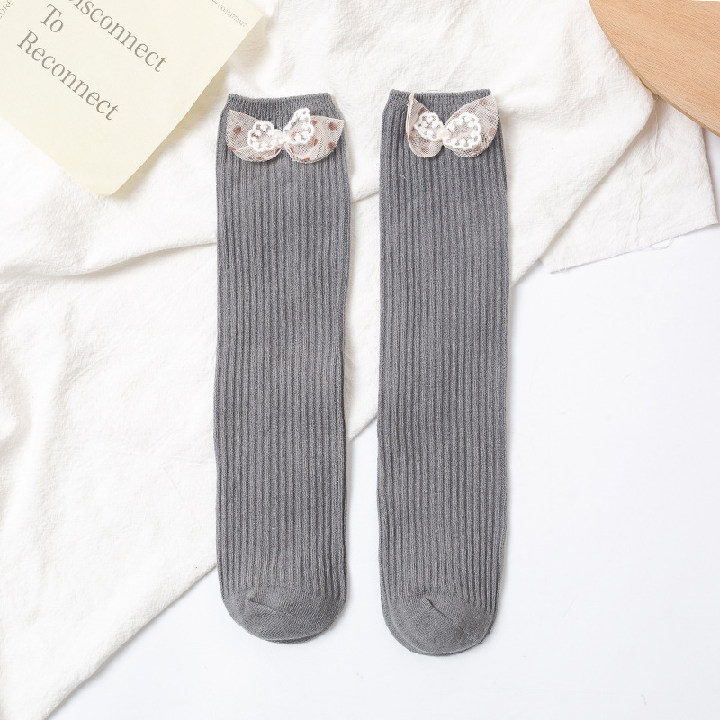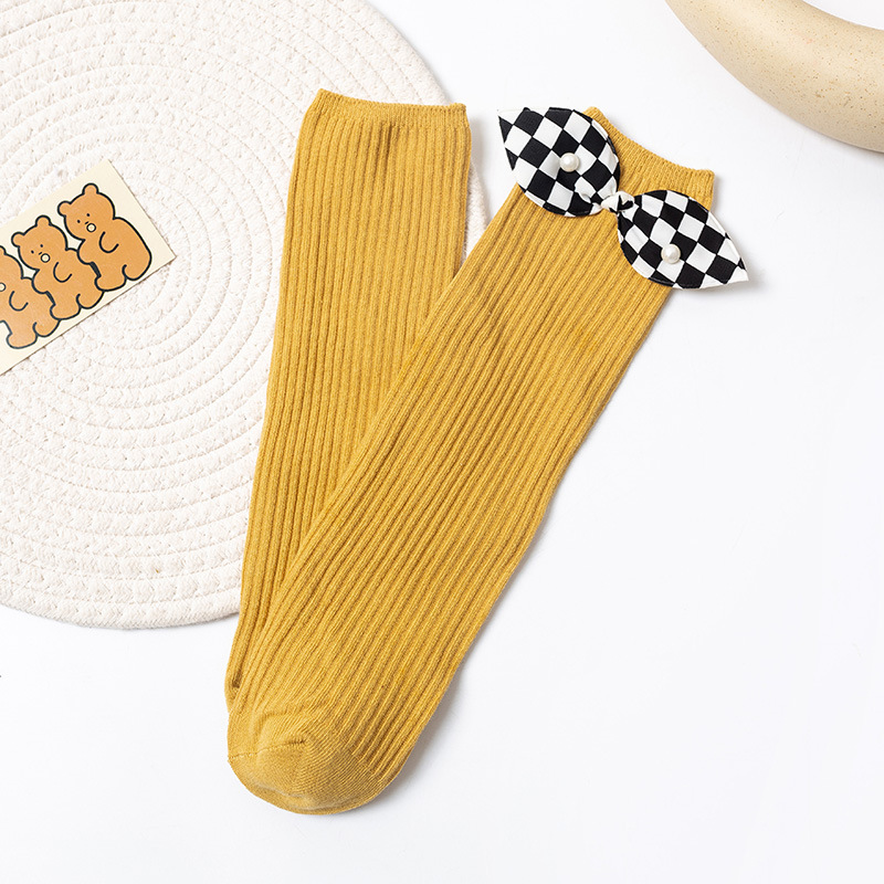 여아 양말 봄과 가을 얇은 면 아기 스타킹 바둑판 나비매듭 스타킹 어린이 스타킹 학생 스택 스타킹