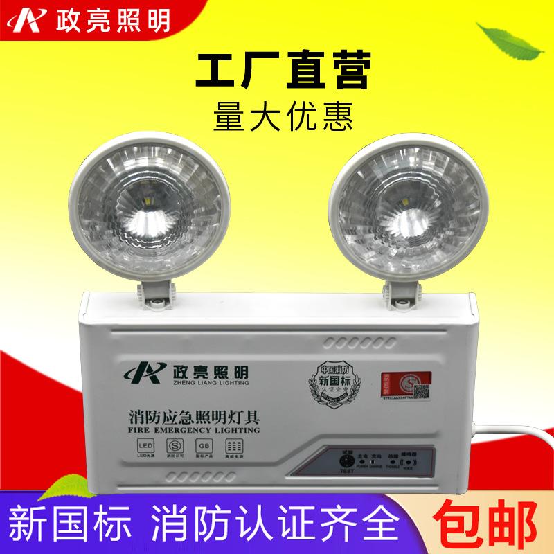 • led消防应急照明灯新国标商用停电充电安全出口双头应急灯批发