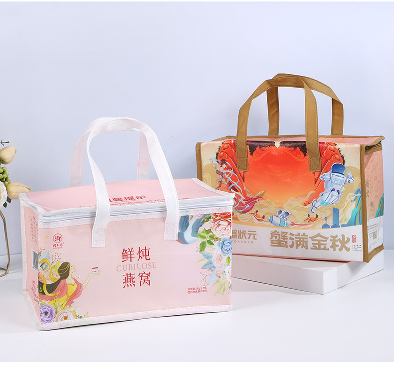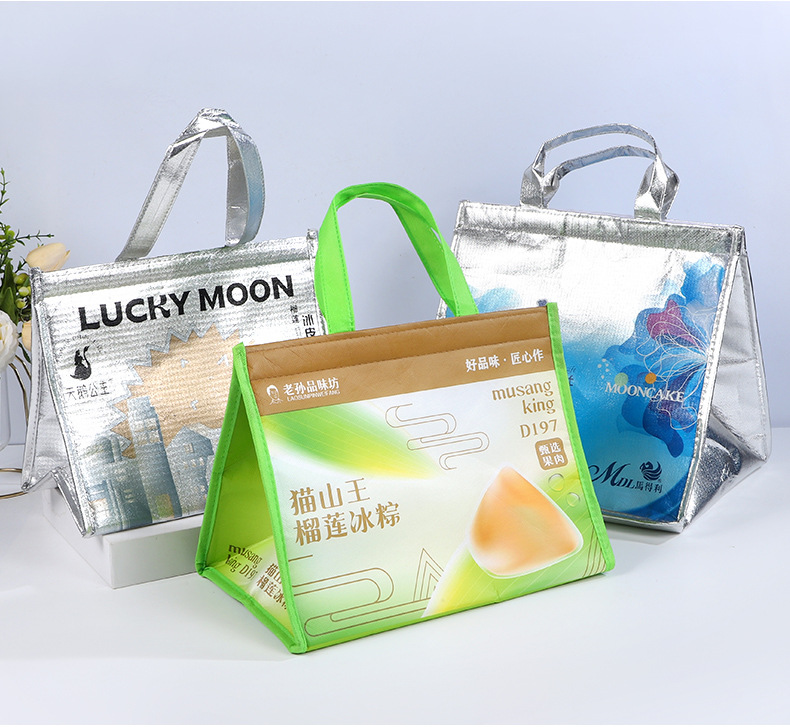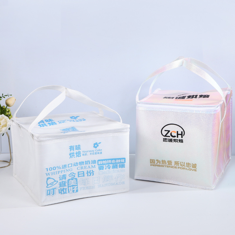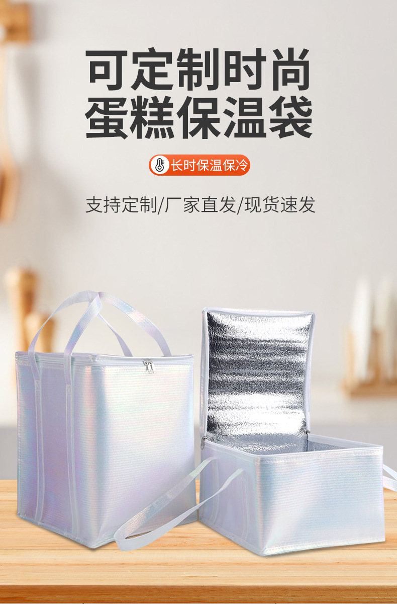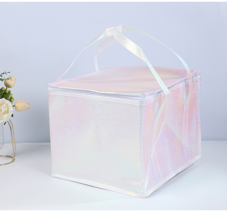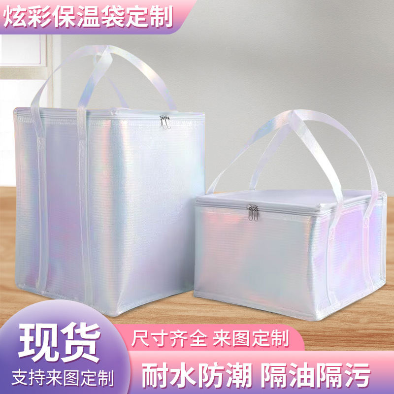 케이크 단열 백 도매 다채로운 레이저 필름 보존 바베큐 테이크 아웃 휴대용 절연 백 부직포 알루미늄 호일