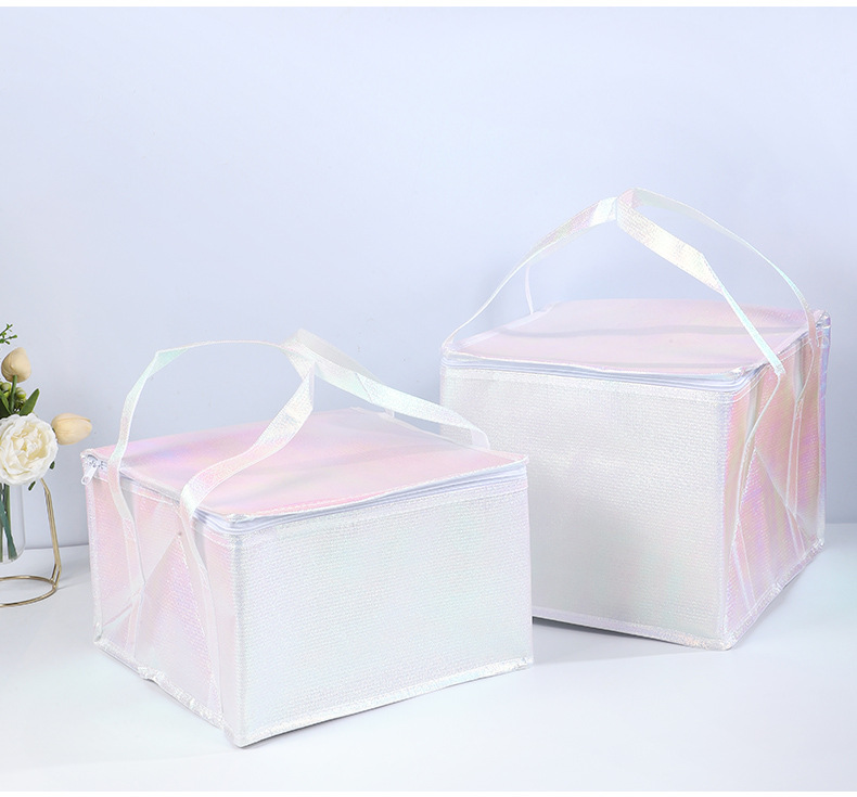 케이크 단열 백 도매 다채로운 레이저 필름 보존 바베큐 테이크 아웃 휴대용 절연 백 부직포 알루미늄 호일스토어 가기