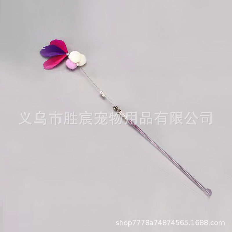 고양이 장난감 모피 공 술 고양이 스틱 물린 방지 장난감 꽃 깃털 벨 요정 고양이 스틱 애완 동물 용품