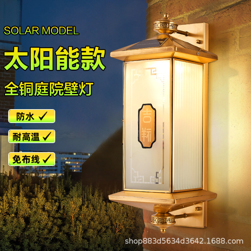 태양 새로운 중국 스타일 야외 벽 조명 모든 구리 주도 방수 게이트 기둥 조명 외벽 발코니 빌라 정원 조명