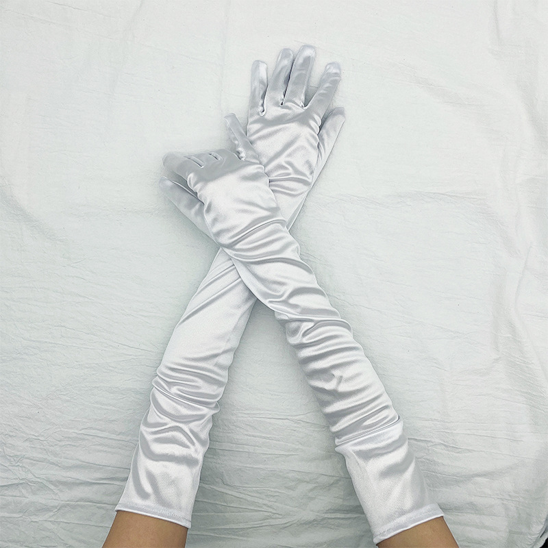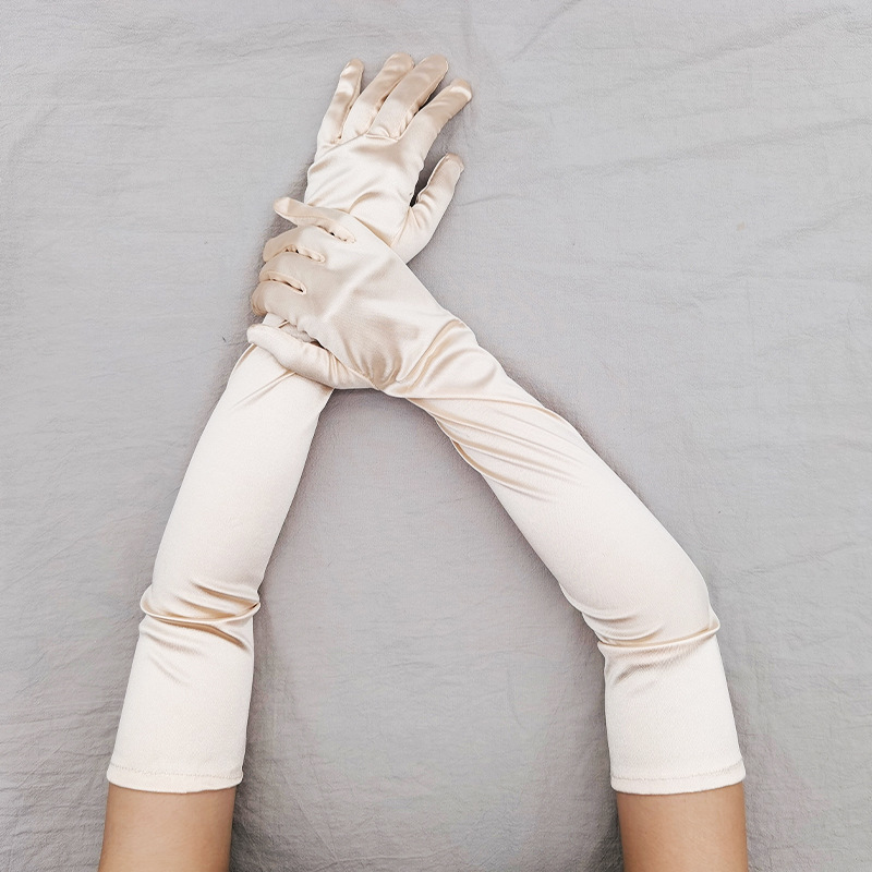 길어진 새틴 스트레치 새틴 장갑 1920 년대 빈티지 파티 코스프레 숙녀 장갑 웨딩 장갑