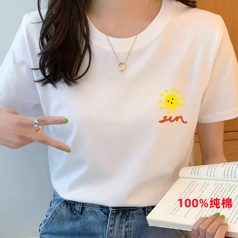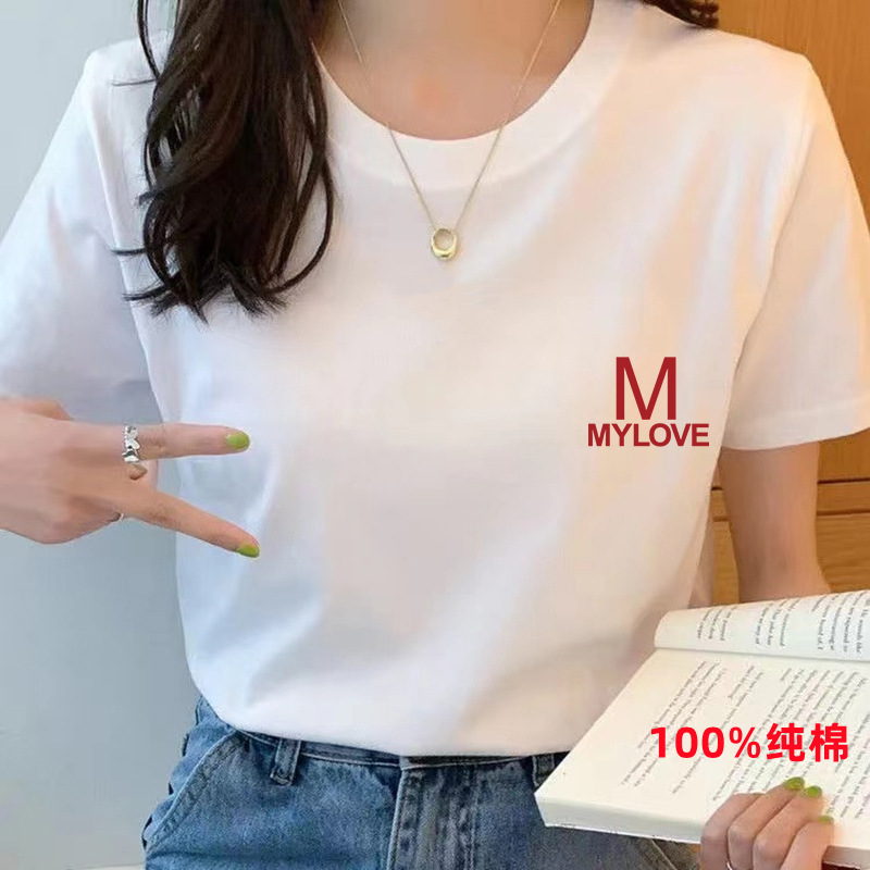 2026년 신상 한국 스타일 여성 루즈핏 기본 티셔츠 라운드넥 화이트 탑 정면 어깨 캐주얼 순면 반팔 티셔츠스토어 가기