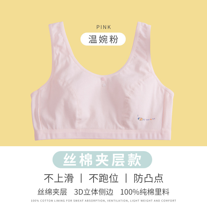 새로운 인쇄 얇은 몰드 컵 통기성 여아 브래지어 풀 컵 노 스틸 링 작은 조끼 여아 발달 속옷