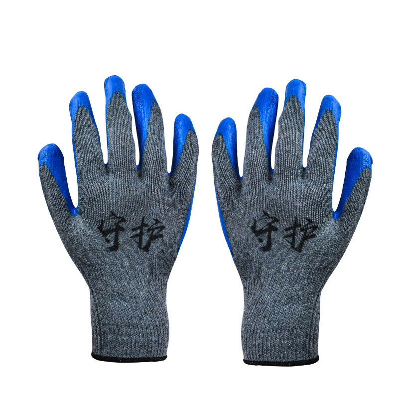 라텍스 주름 미끄럼 방지 내마모성 장갑 두꺼운 통기성 안티 컷 미끄럼 방지 보강 작업자 회색 원사 파란색 보호 장갑을 들고스토어 가기