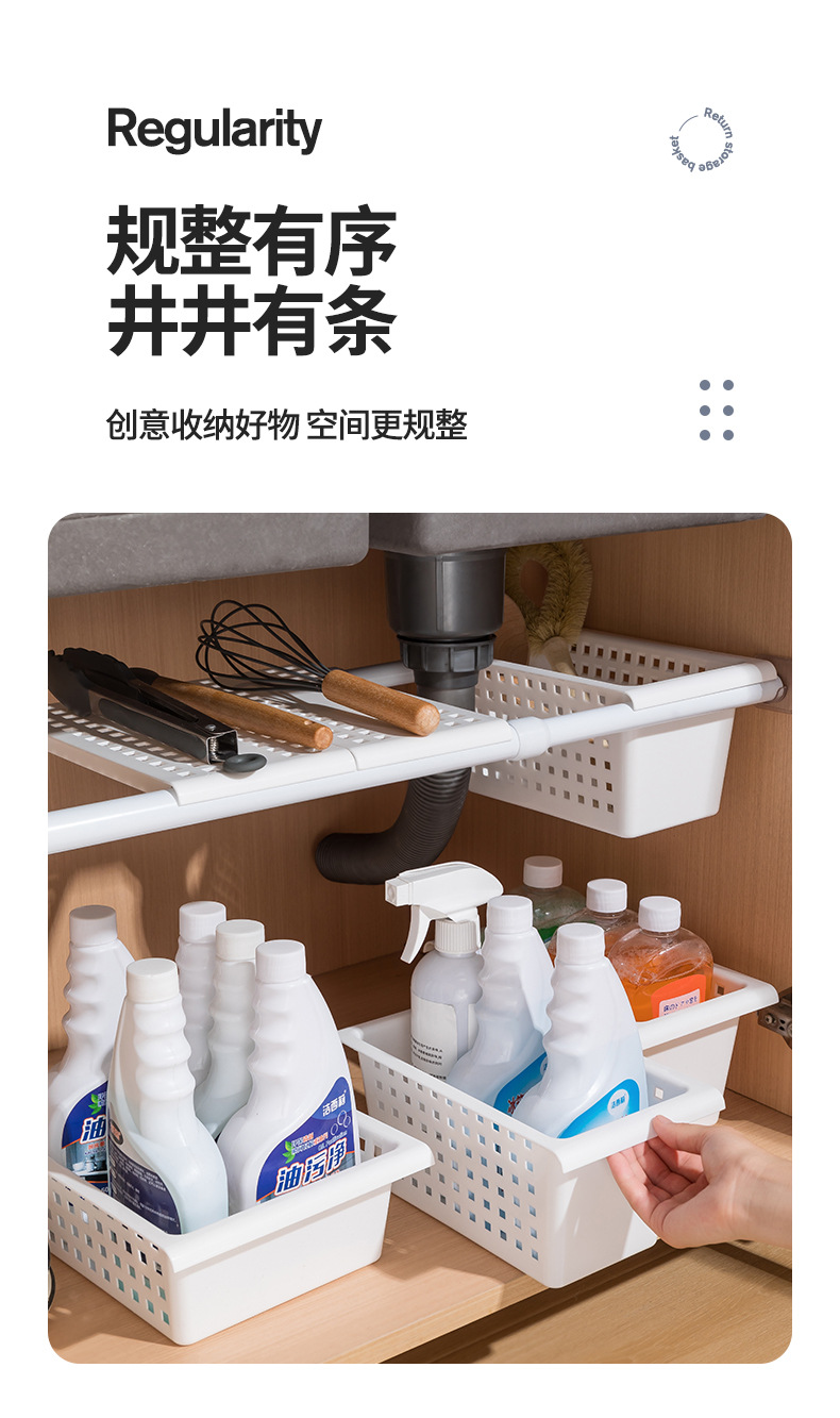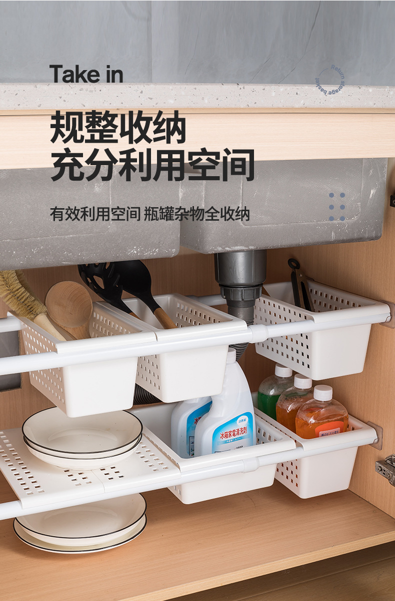 일본식 구멍없는 텔레스코픽 로드 스토리지 랙 수납 바구니 주방 바닥 캐비닛 싱크 옷장 레이어드 다기능 스토리지 랙