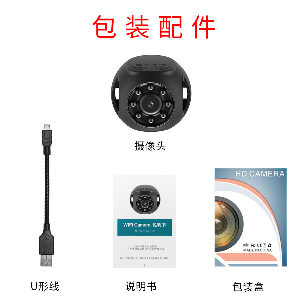 2024摄像头Wifi智能网络监控器高清红外夜视摄像机运动DV无线礼品
