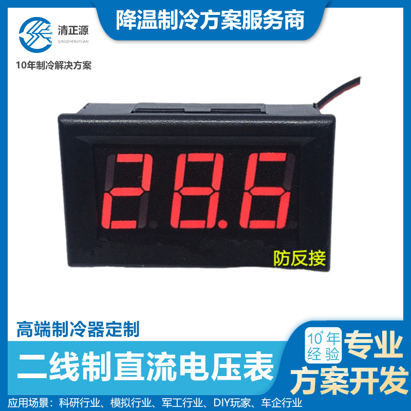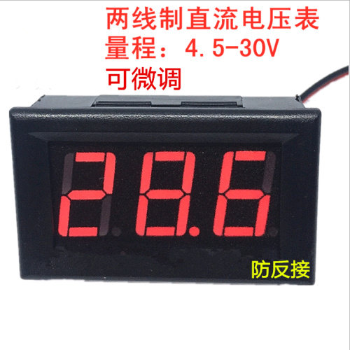 电压表量程4.5-30V,采用2线制,线长20cm,直接接入电源端即可显示当前电源电压。