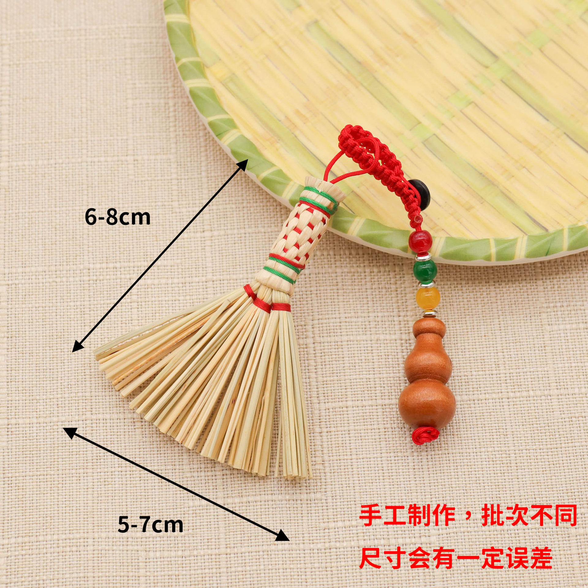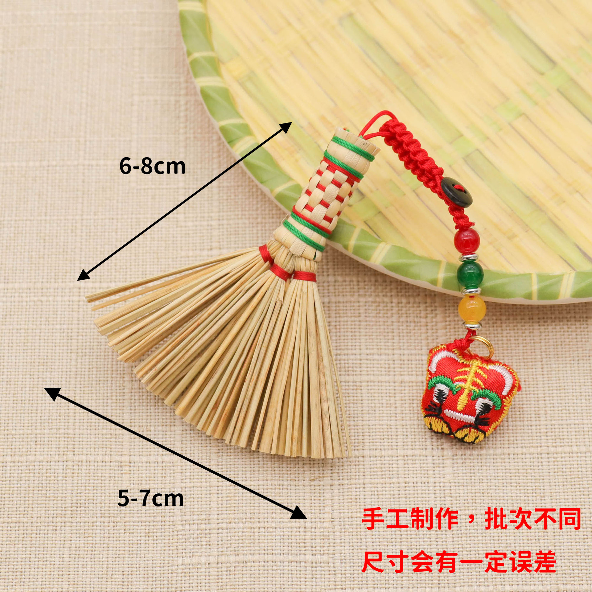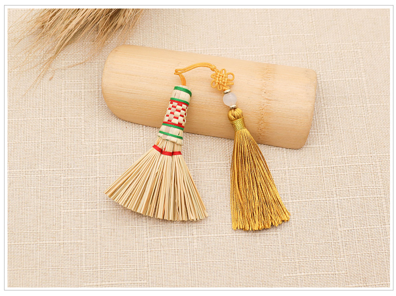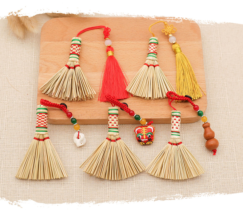 드래곤 보트 페스티벌 작은 빗자루 펜던트 아기 머리맡 압력 수면 빗자루 열쇠 고리 펜던트 수제 금 빗자루
