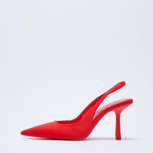 봄 2022 새로운 뾰족한 스티치 미들 힐 싱글 슈즈 후면 빈 발가락 샌들 하이힐 신발 녹색 여성 신발스토어 가기