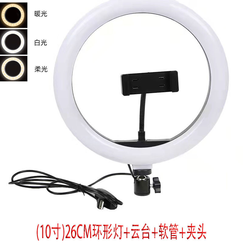 10寸环形灯,标配为:10寸环形灯,小云台,一根弯热靴软管,包装盒