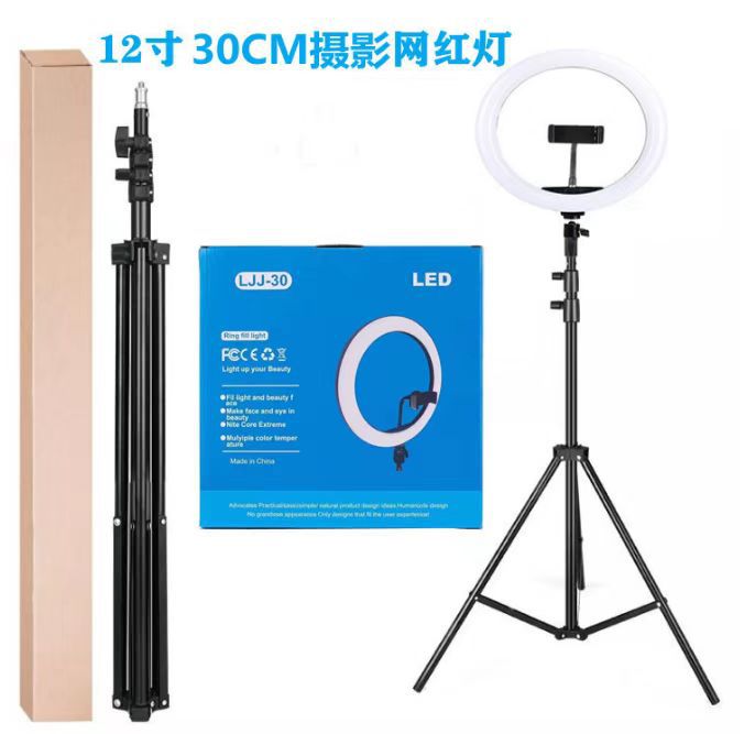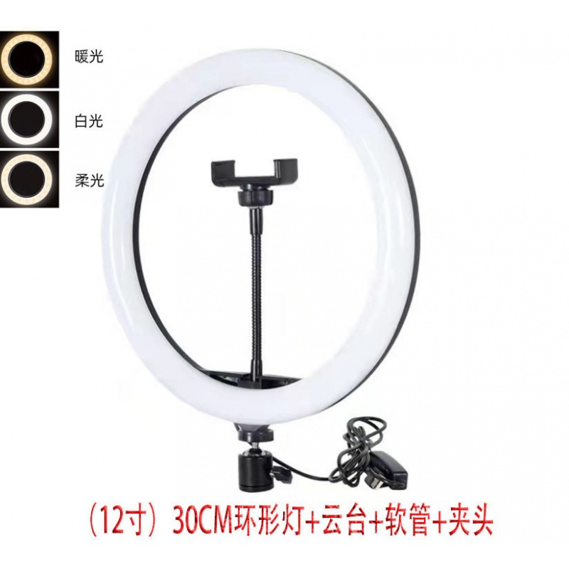 12寸环形灯,标配为:12寸环形灯,小云台,一根弯热靴软管,包装盒
