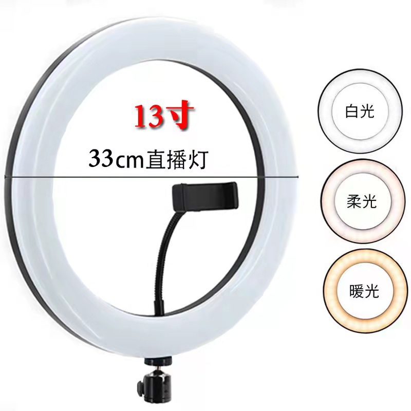 13寸环形灯,标配为:13寸环形灯,小云台,一根弯热靴软管夹,包装盒