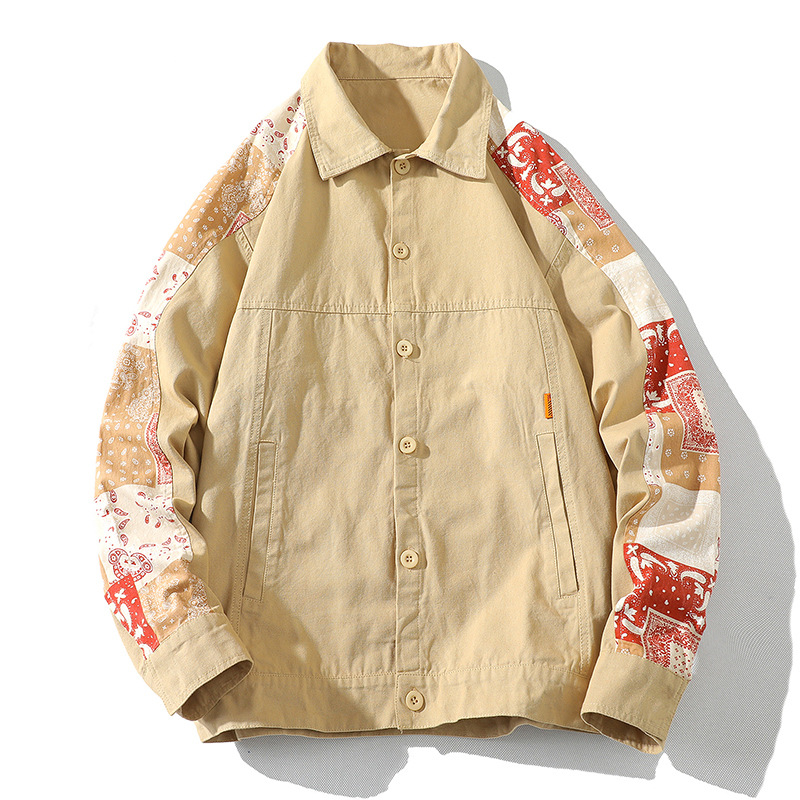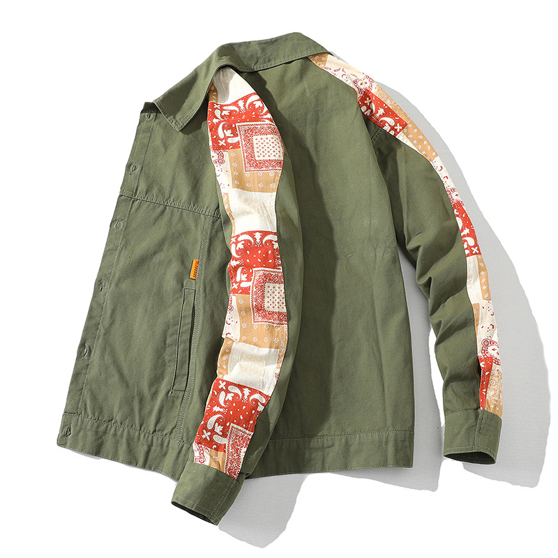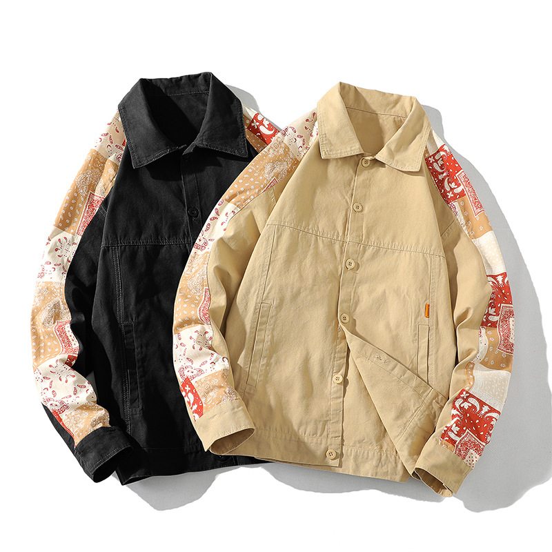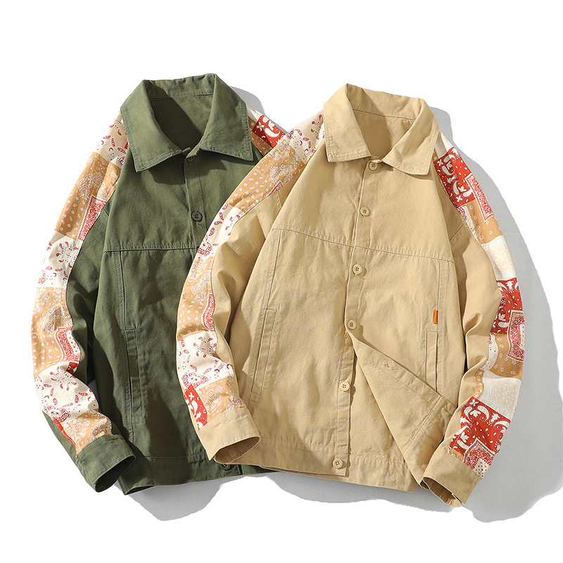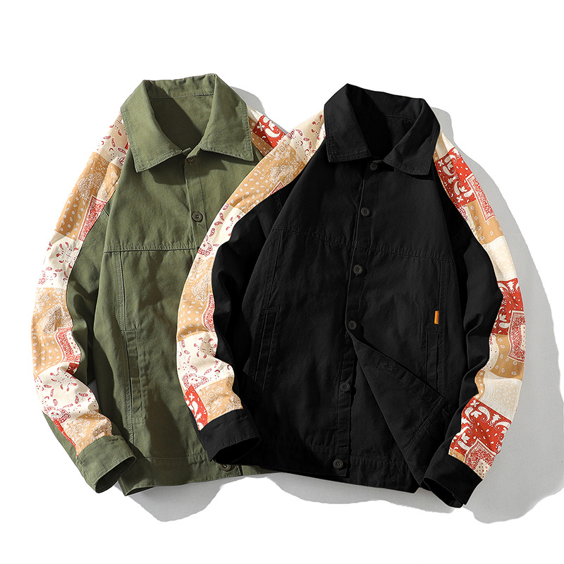 크로스 보더 재킷 캐슈 플라워 재킷 남자의 가을 트렌디 탑 의류 트렌디 브랜드 느슨한 야구 세트 대비 컬러 재킷 남성용스토어 가기