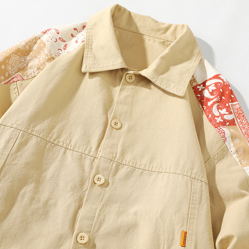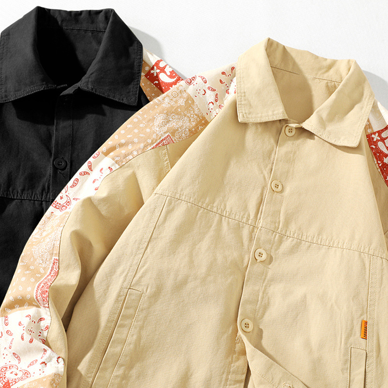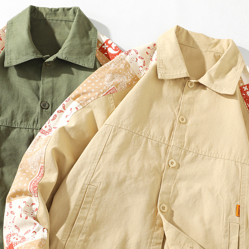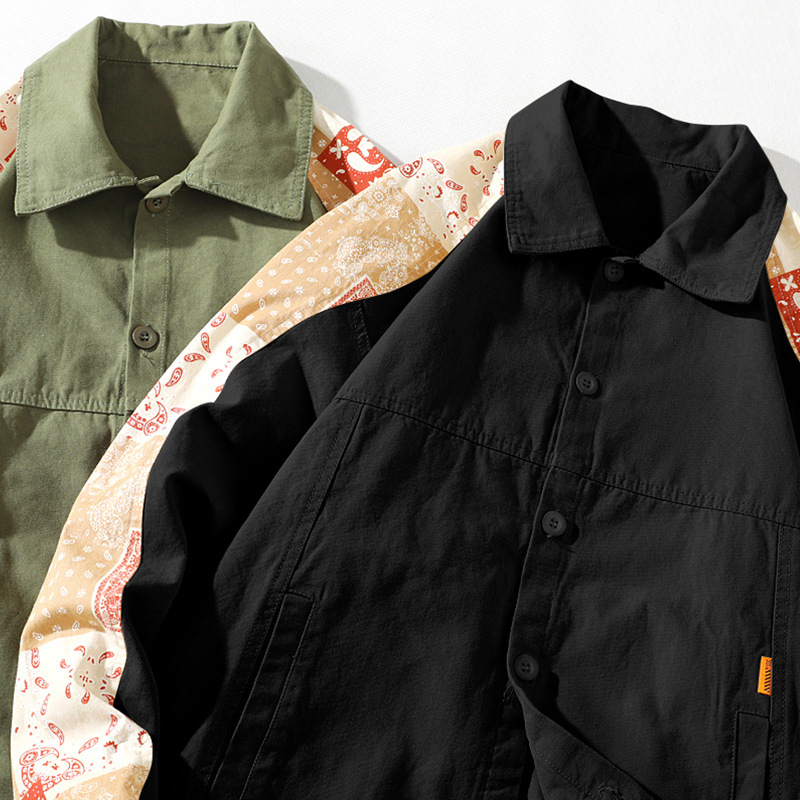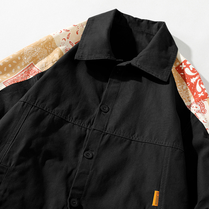 크로스 보더 재킷 캐슈 플라워 재킷 남자의 가을 트렌디 탑 의류 트렌디 브랜드 느슨한 야구 세트 대비 컬러 재킷 남성용스토어 가기