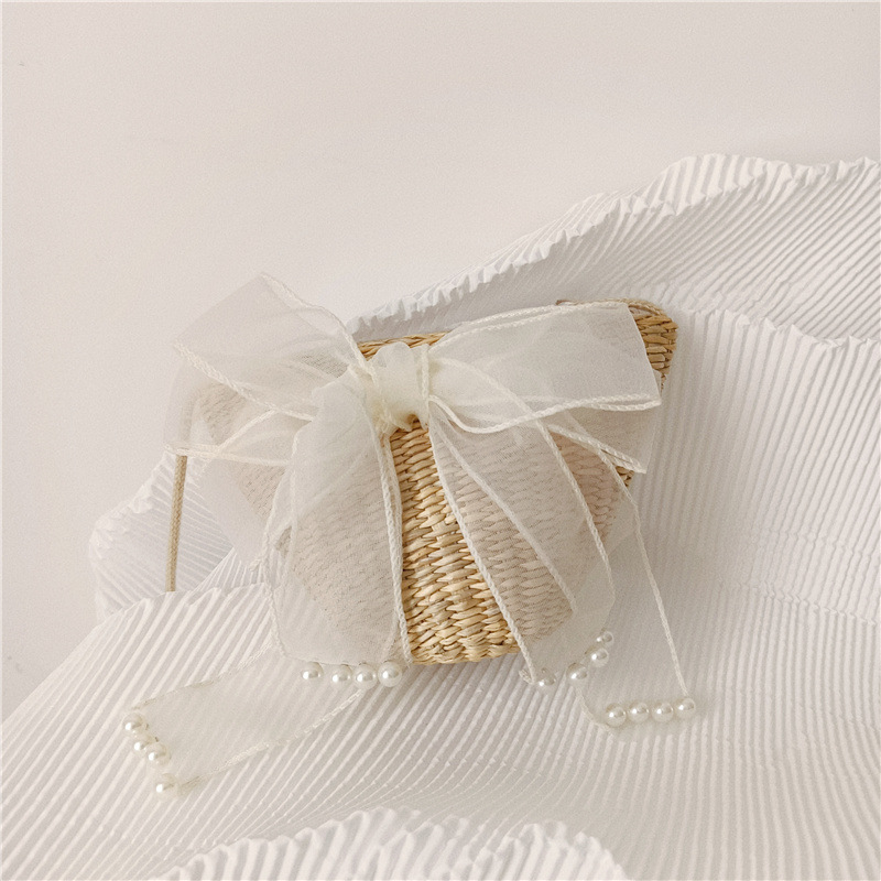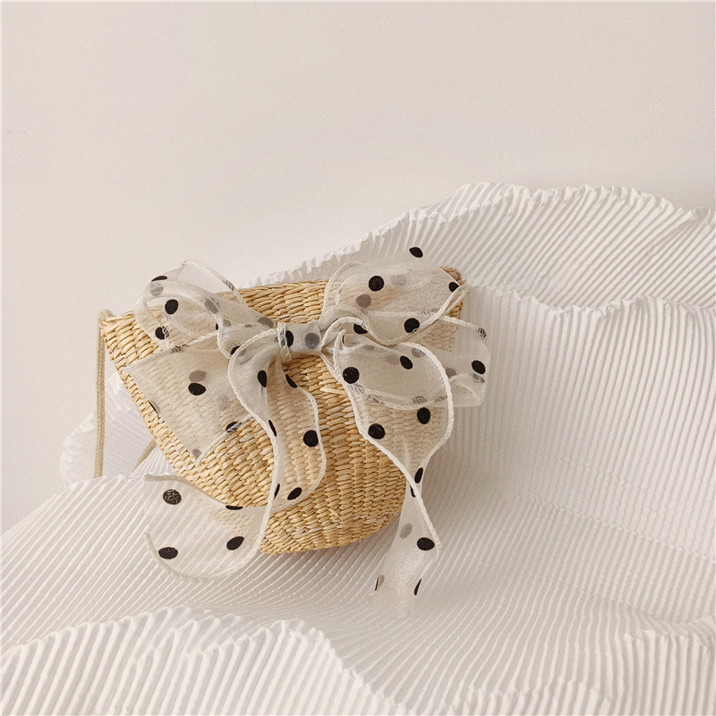 여자 착용 모양 메쉬 활 밀 밀짚 가방 사진 여름 해변 달콤한 어린이 동전 지갑 가방스토어 가기