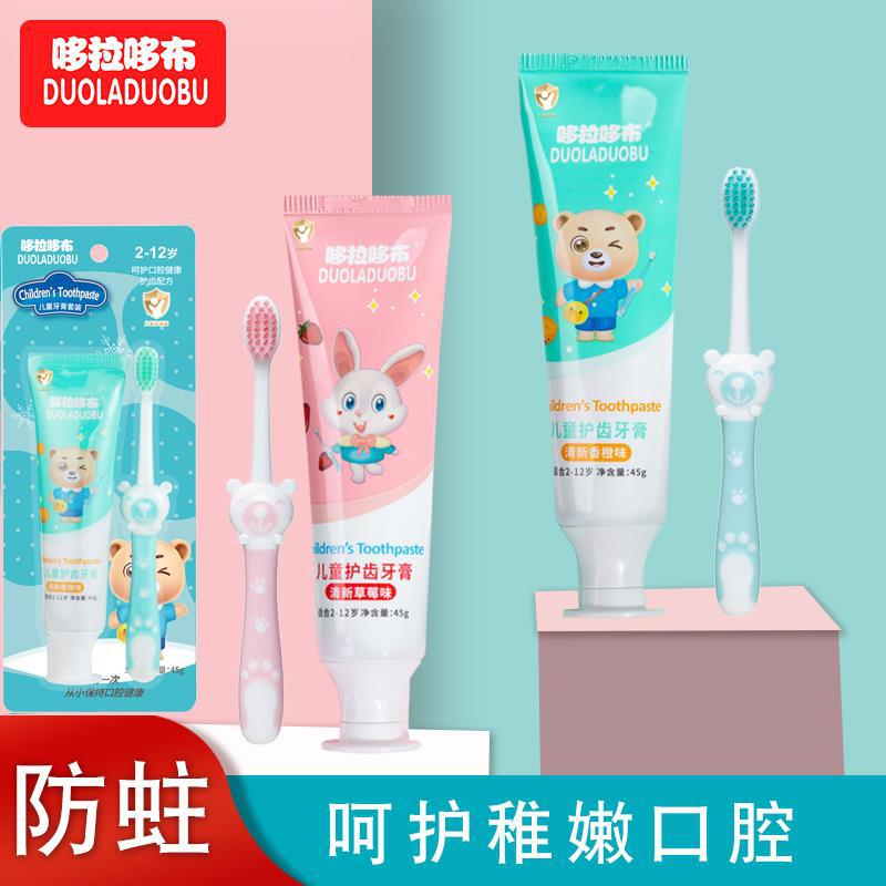 哆拉哆布儿童防蛀牙膏水果味清香牙膏牙刷套装宝宝牙膏牙刷6382