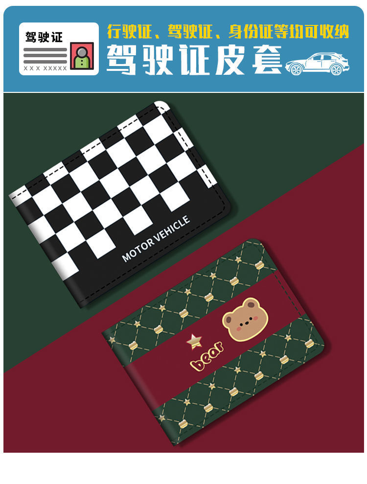 운전 면허 보호 커버 체크 보드 운전 면허 자동차 운전 면허증 가죽 커버 여성 만화 귀여운 개인화 된 창조적 인 남성 커버스토어 가기