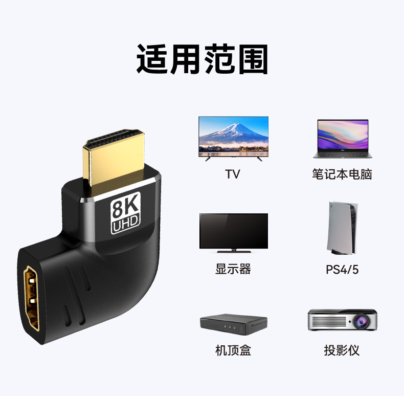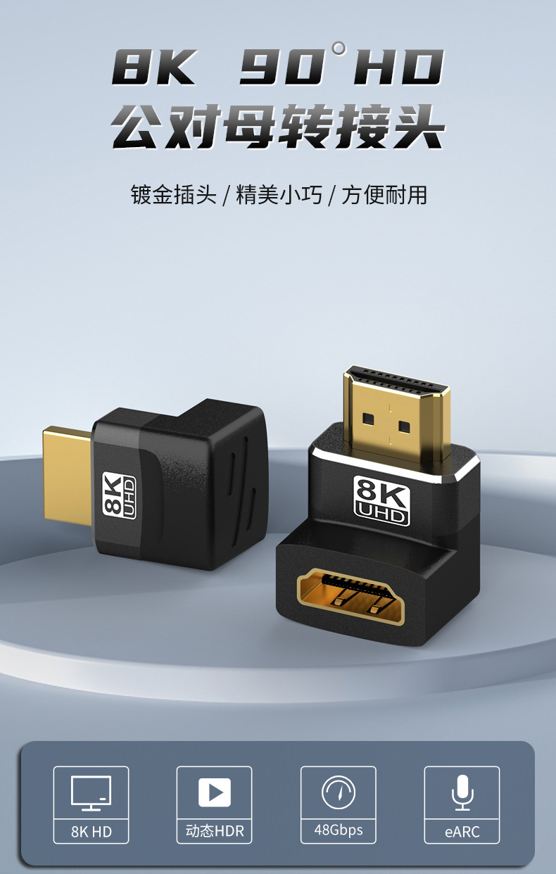 재고 8K HD HDMI2.1 90 도 남성에서 여성 어댑터 컴퓨터 셋톱 박스 TV 어댑터