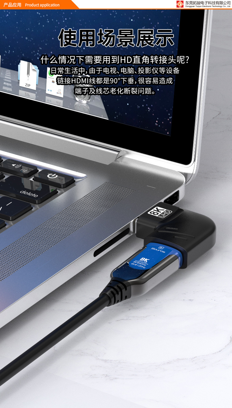 • 8KHDMI 남성-여성 90 ° 어댑터 측면 굽힘