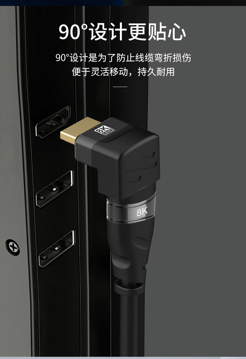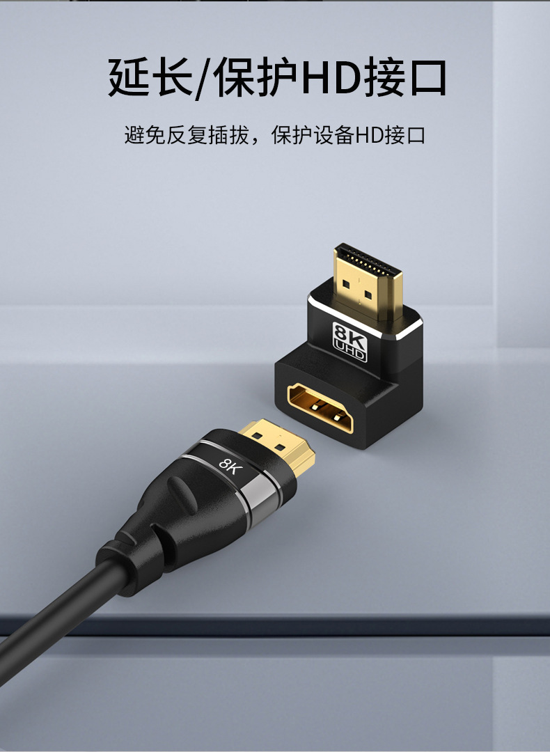 • 8KHDMI 남성-여성 270°어댑터 측면 굽힘