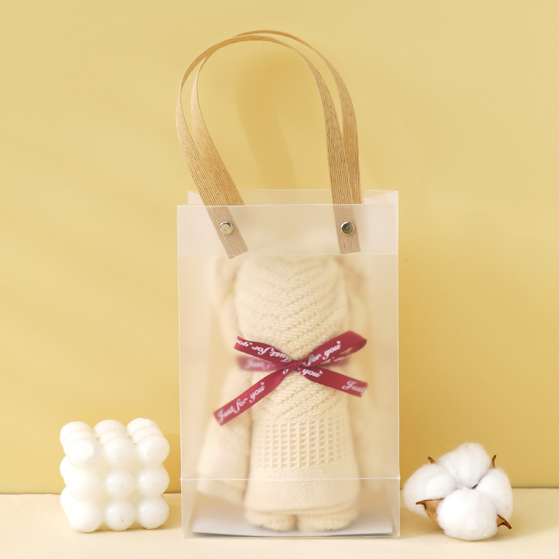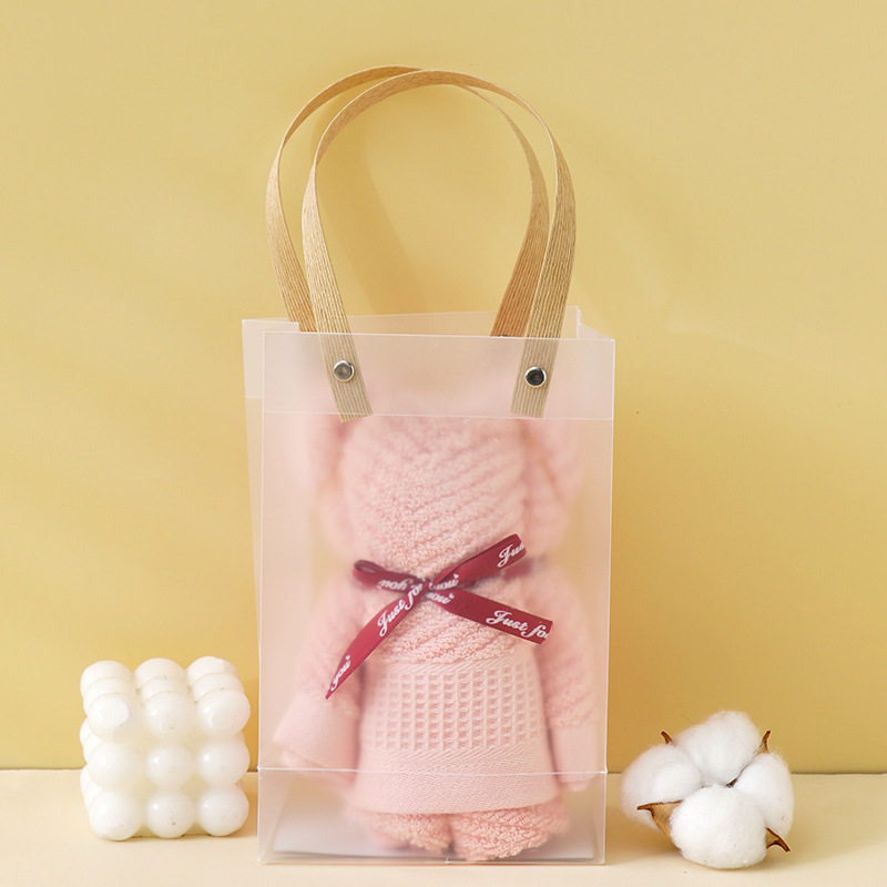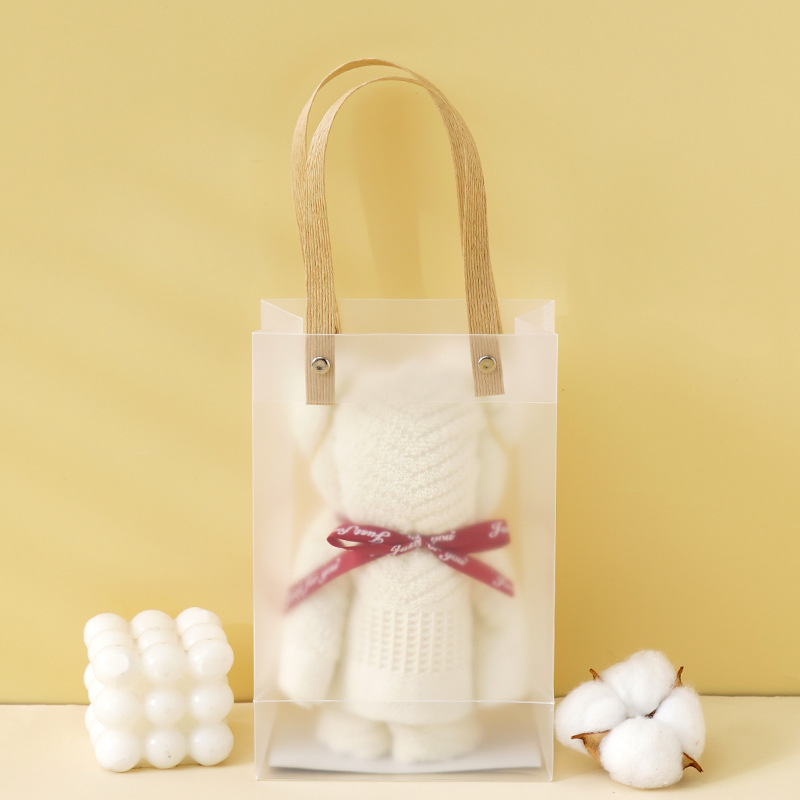 • PVC 휴대용 + 능직 곰 수건 쌀 화이트
