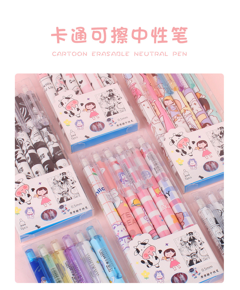 만화 크리 에이 티브 마찰 박스형 젤 펜 지울 수있는 펜 0.5 초등 학생을위한 총알 블루 코어 학용품스토어 가기