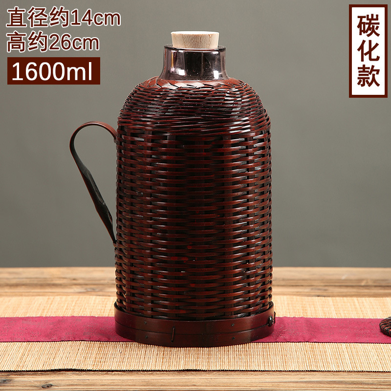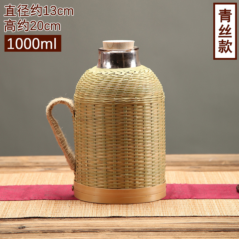 대나무 주전자 가정용 레트로 주전자 유리 라이너 구식 병 찻집 보온병 대나무 주전자스토어 가기