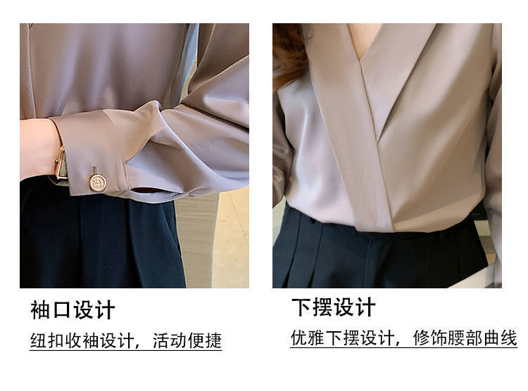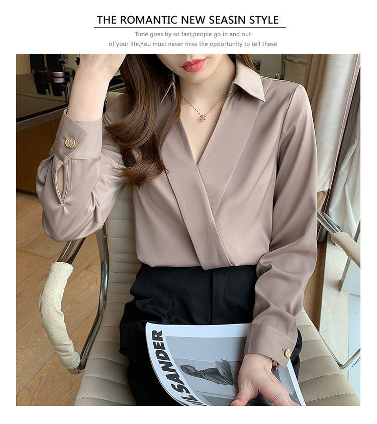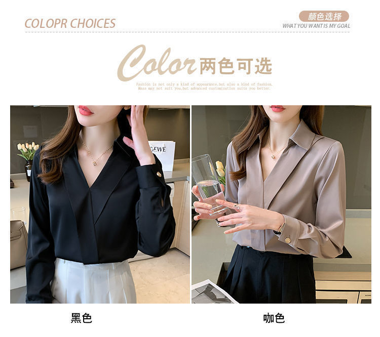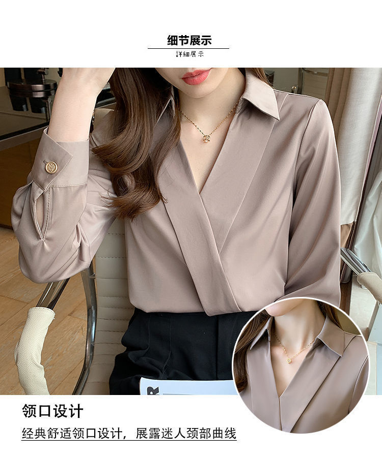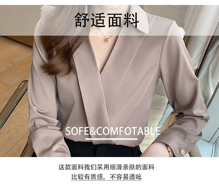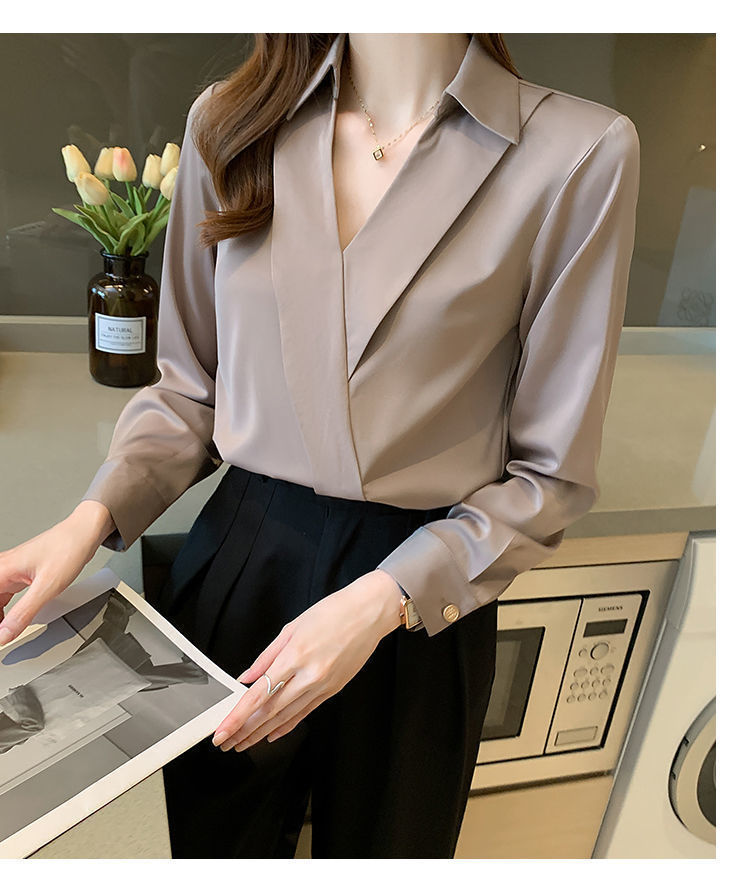 가을 2022 새로운 긴팔 셔츠 여성용 슬림 핏 심플 라이트 성숙한 스타일 작업장 우아한 섹시한 새틴 셔츠 여성 의류스토어 가기