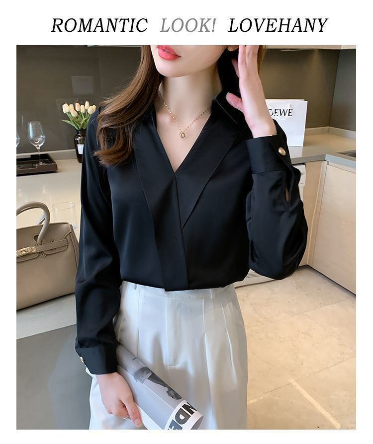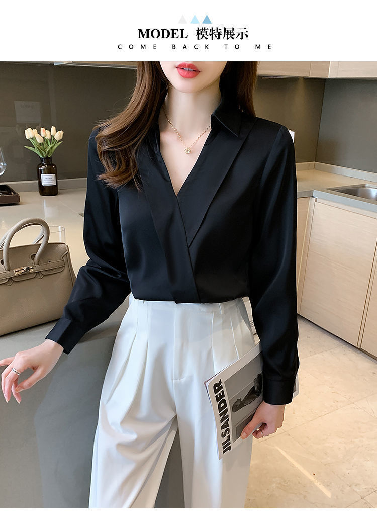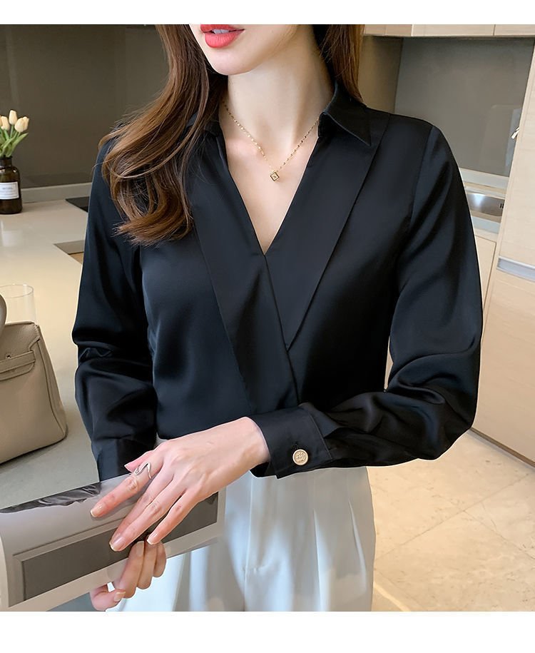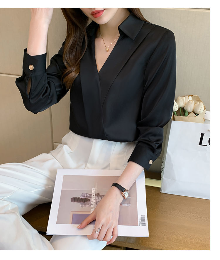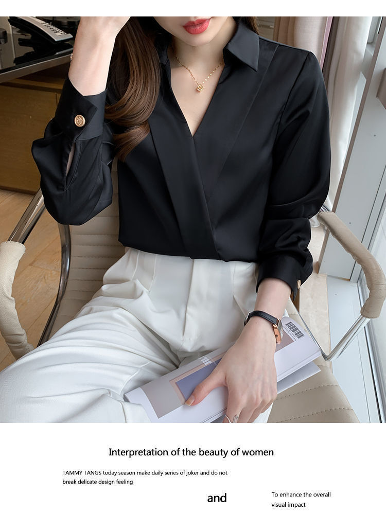 가을 2022 새로운 긴팔 셔츠 여성용 슬림 핏 심플 라이트 성숙한 스타일 작업장 우아한 섹시한 새틴 셔츠 여성 의류스토어 가기