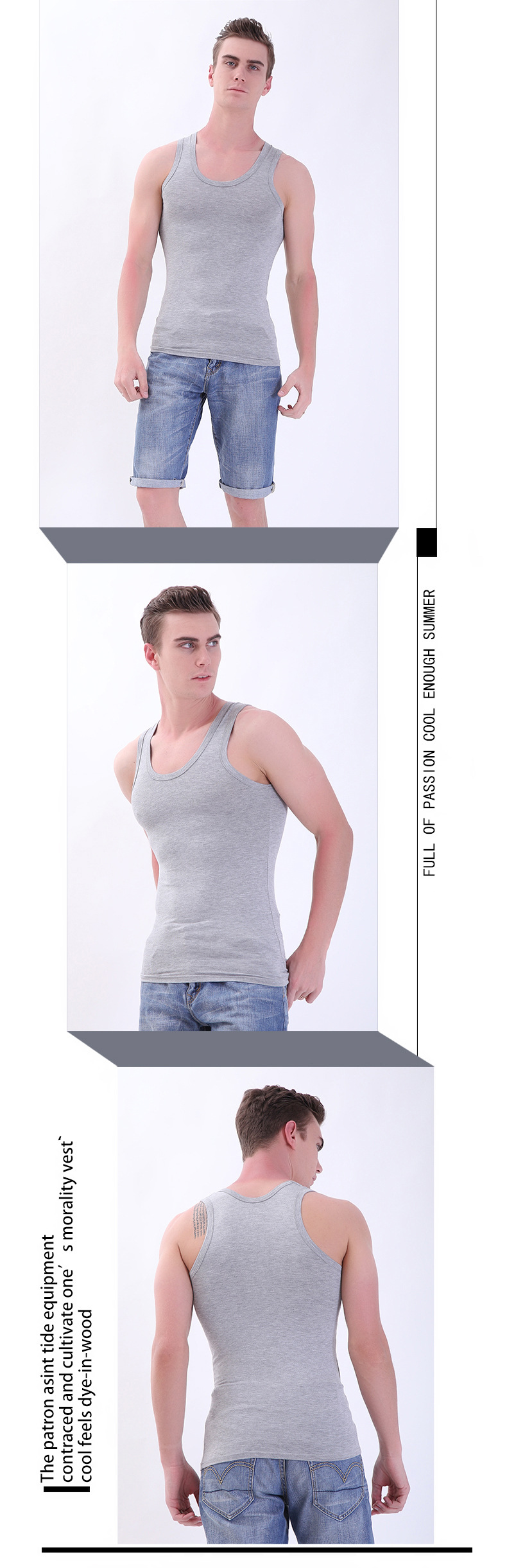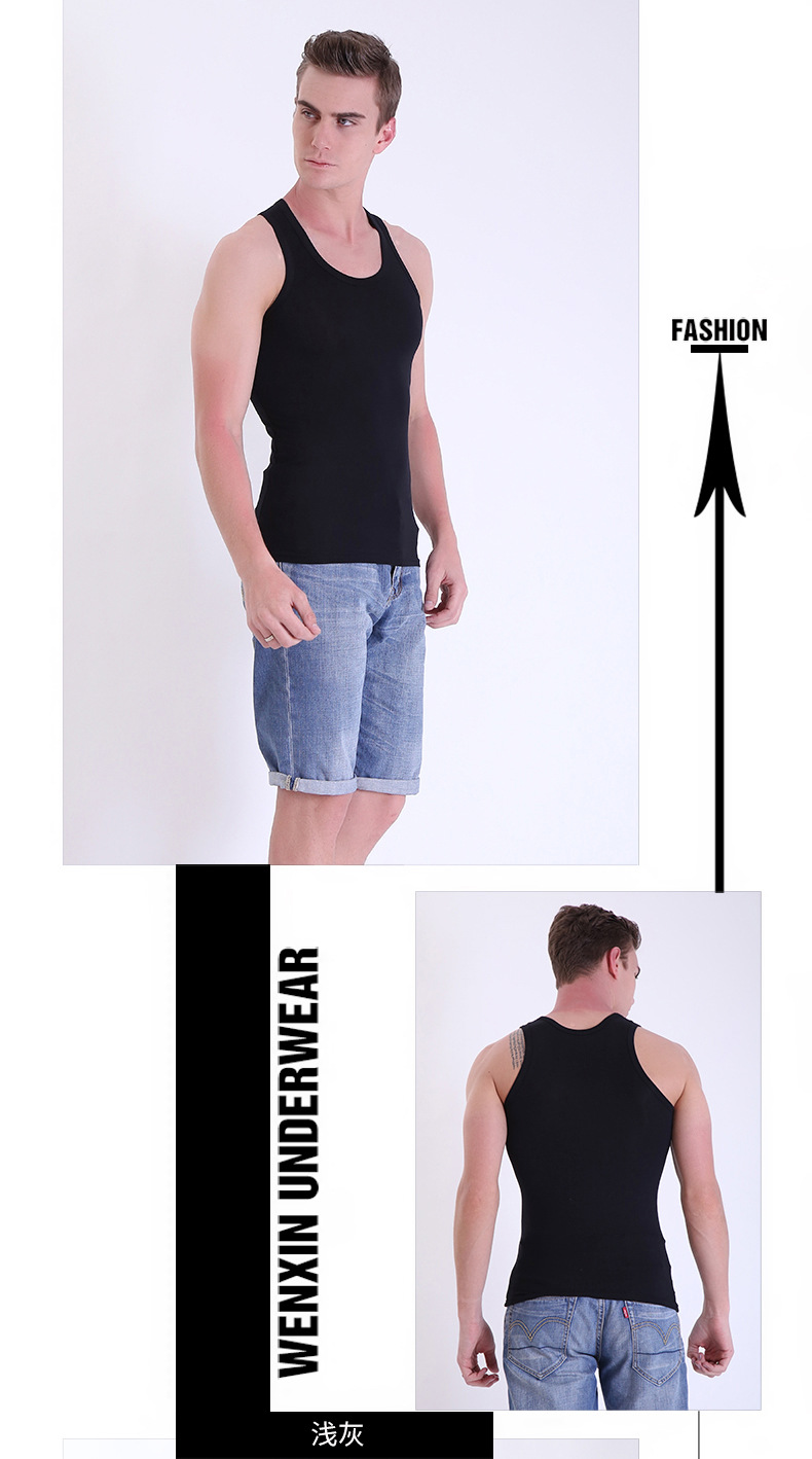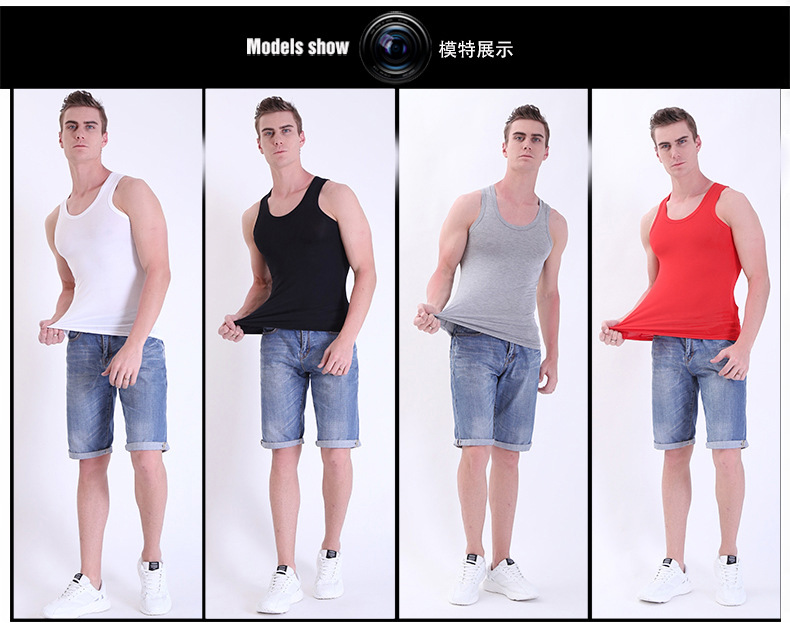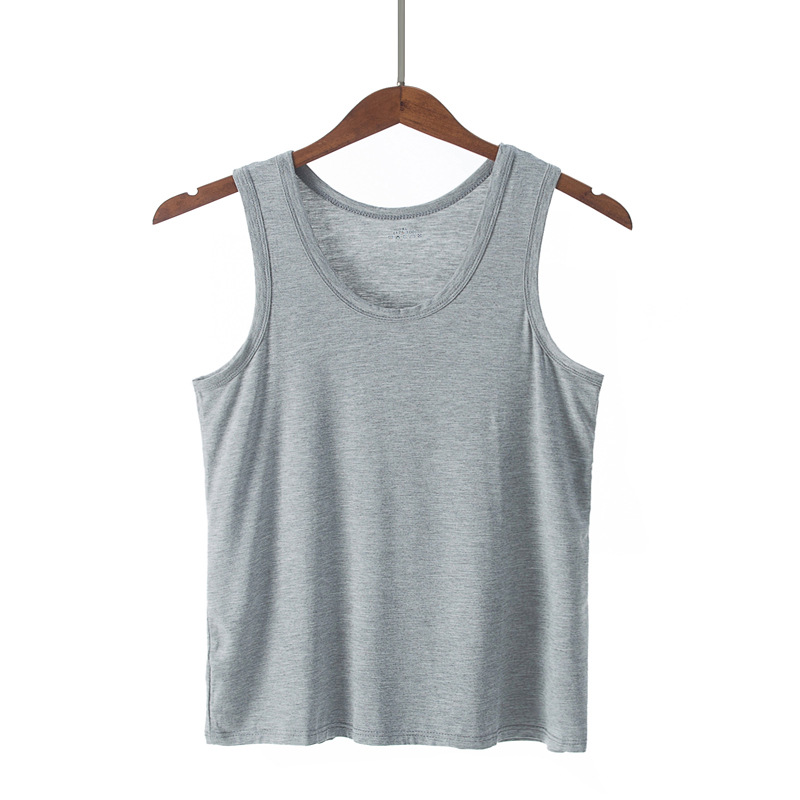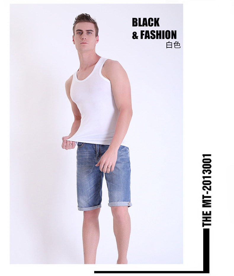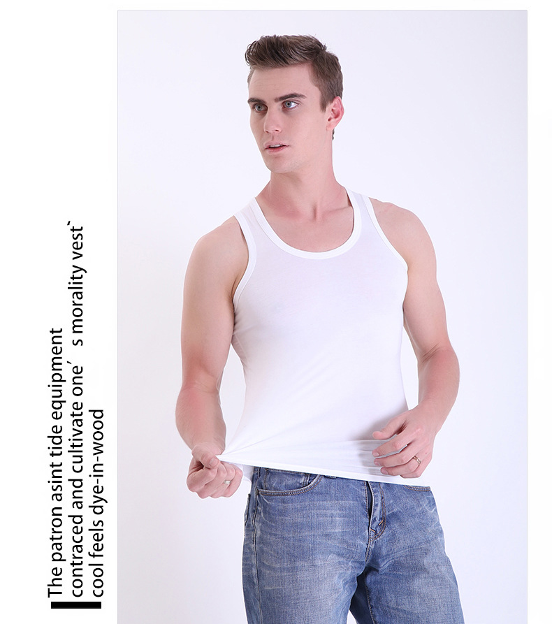 여름 남성 모달 조끼 얼음 실크 민소매 피트니스 훈련 I 자형 스포츠 얇은 좁은 어깨 라운드 넥 바닥 셔츠