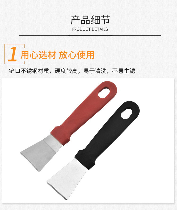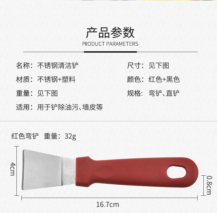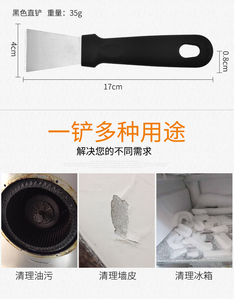 不锈钢油烟铲 冰箱除冰神器 黑色直铲红色弯铲可按需定制 跨境电商供货源 厂家现货直销 多功能家用厨房油烟机去污神器