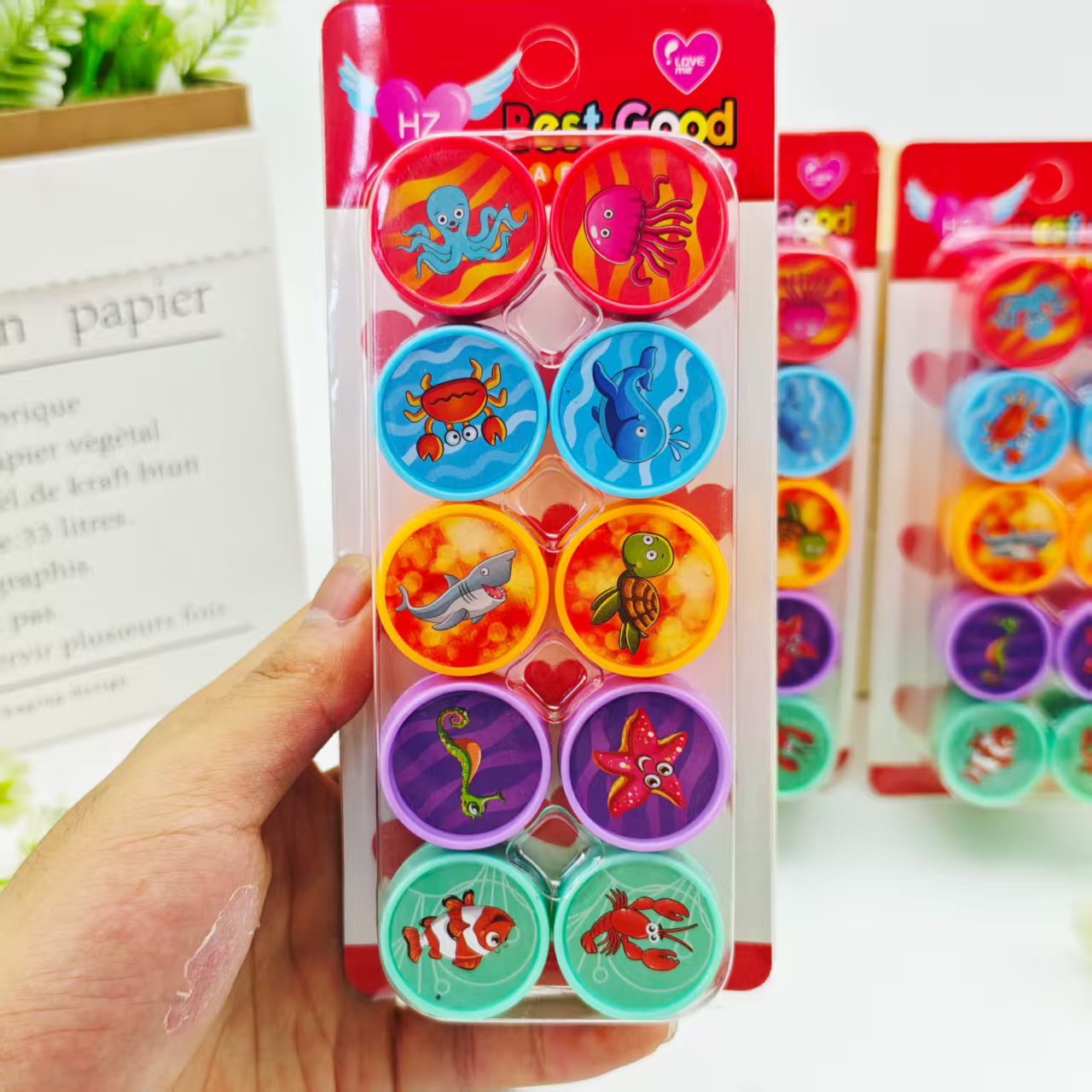 다양한 패턴의 만화 스탬프 어린이 스탬프 재미있는 스탬프 10개의 카드 스탬프 혼합 도매 가능스토어 가기