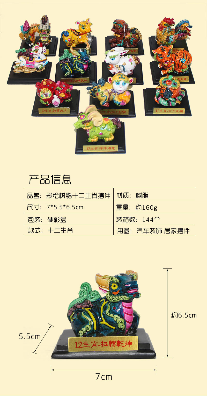 중국 스타일 크리 에이 티브 12 조디악 클레이 피규어 클레이 조각 장식품 민속 기능 공예 장식품 해외로 나가기위한 작은 선물