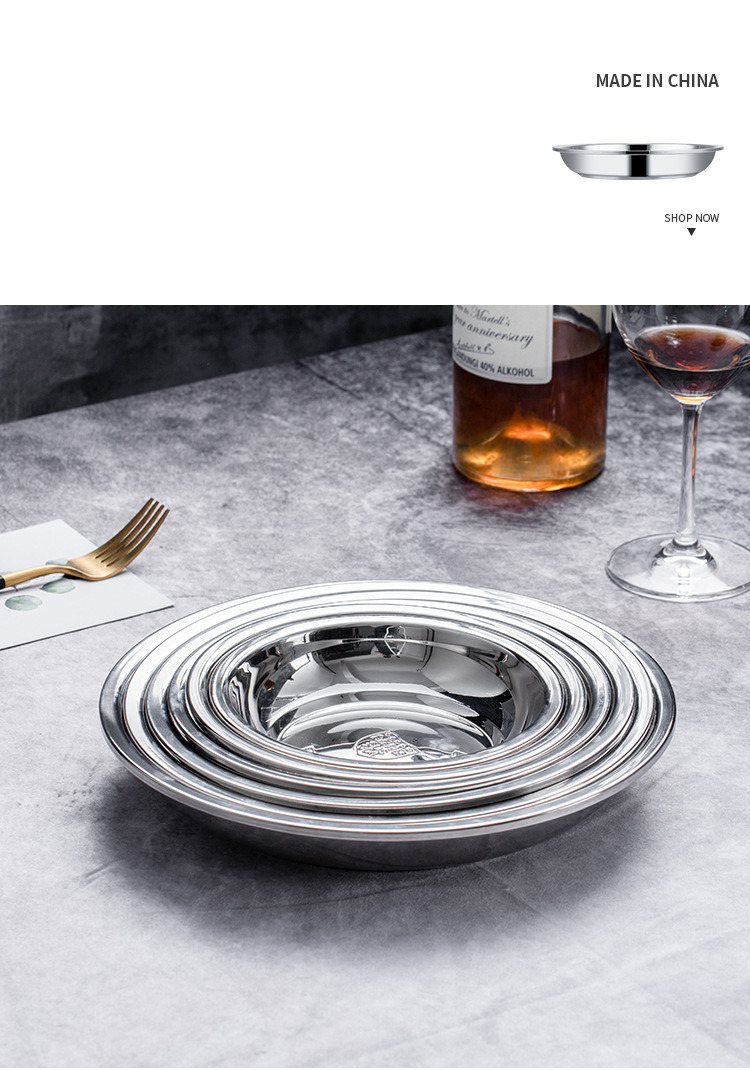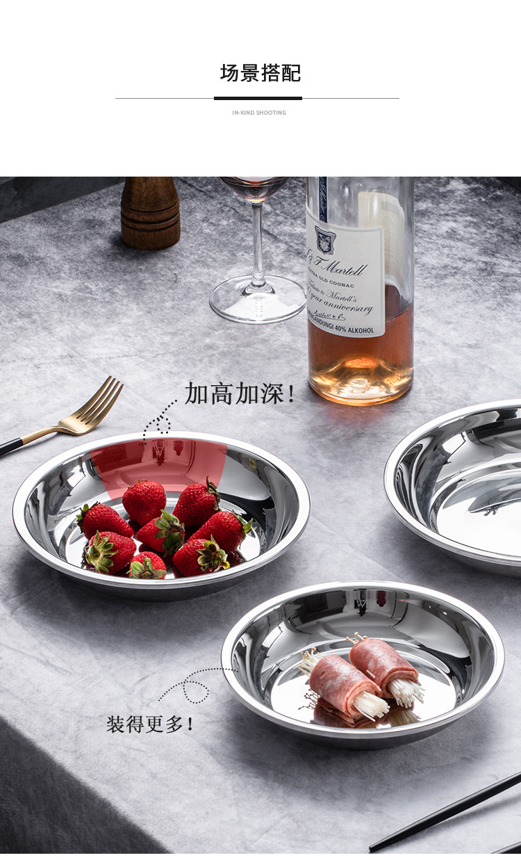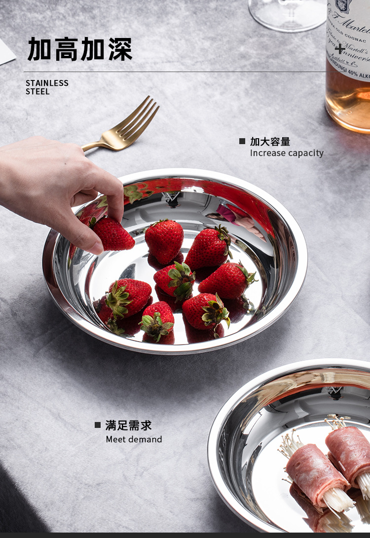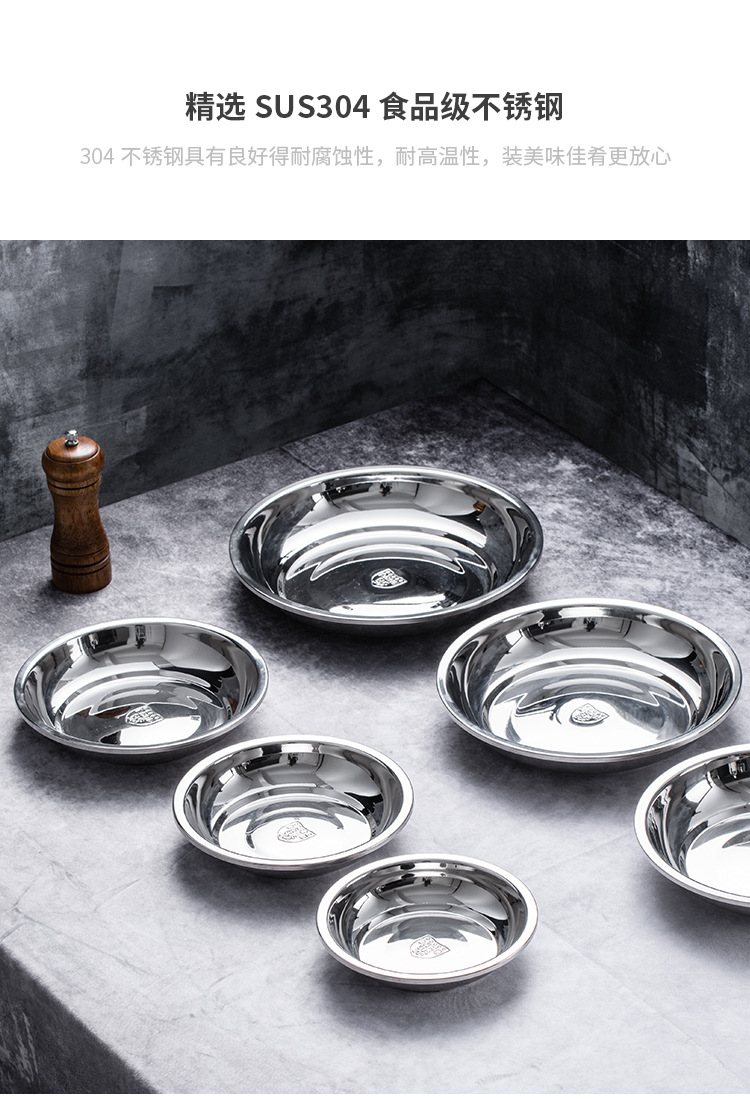 홍파 304 한국 스테인리스 디스크 두껍게 16-26cm 가정용 바베큐 생선 접시 과일 접시 다목적 딥 플레이트스토어 가기