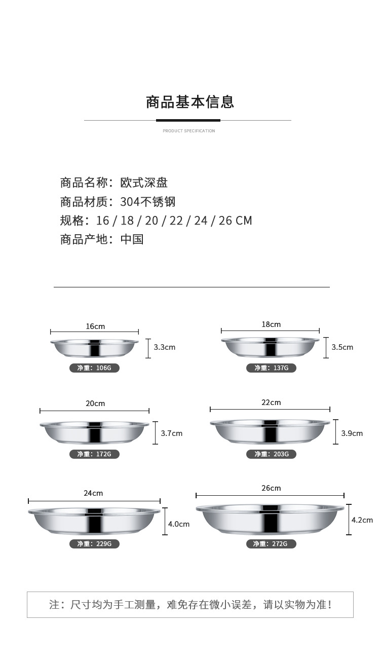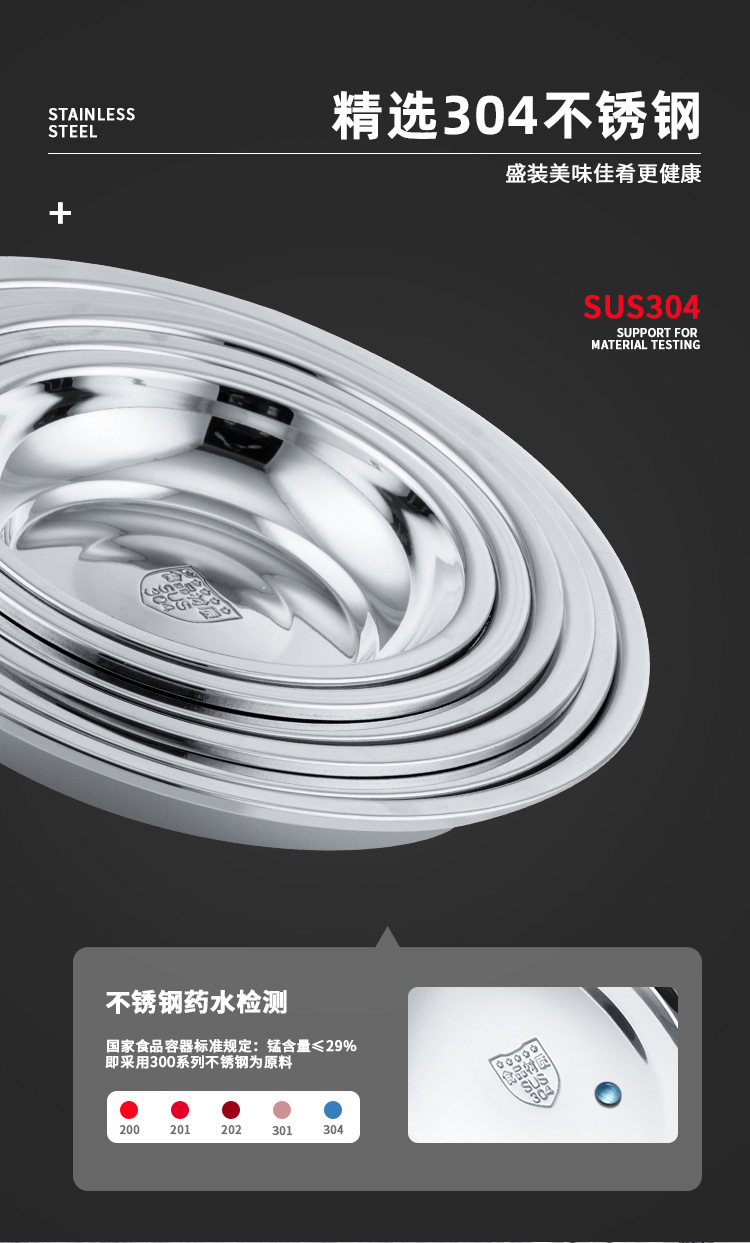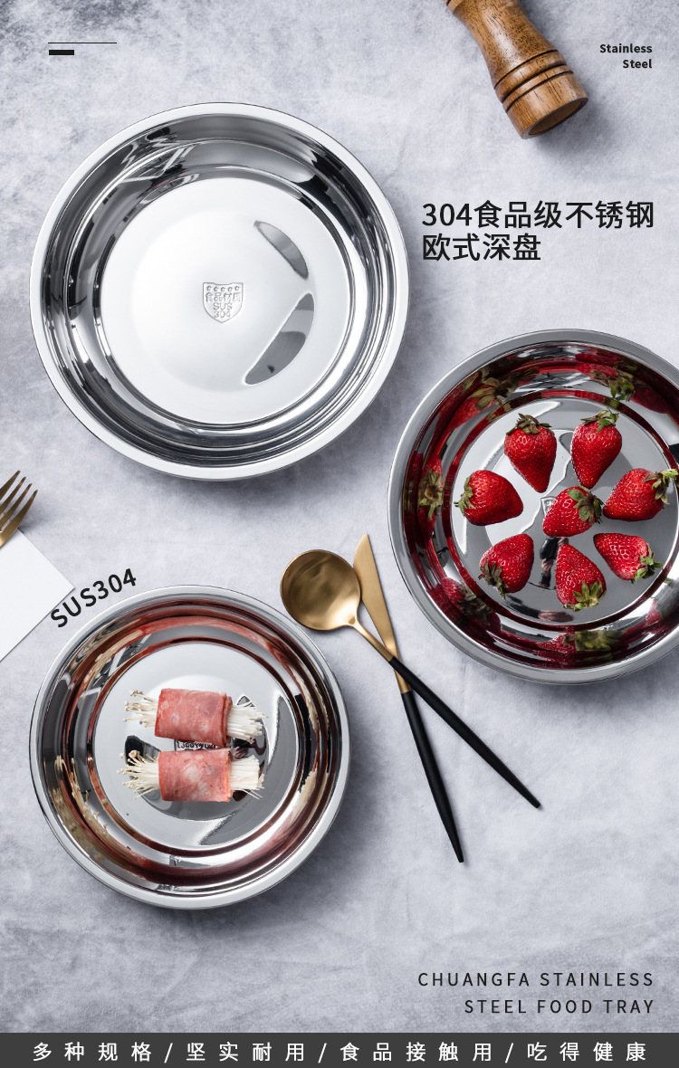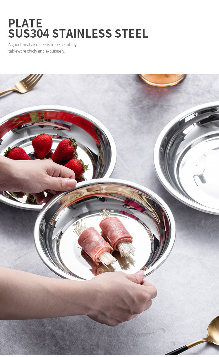 홍파 304 한국 스테인리스 디스크 두껍게 16-26cm 가정용 바베큐 생선 접시 과일 접시 다목적 딥 플레이트스토어 가기
