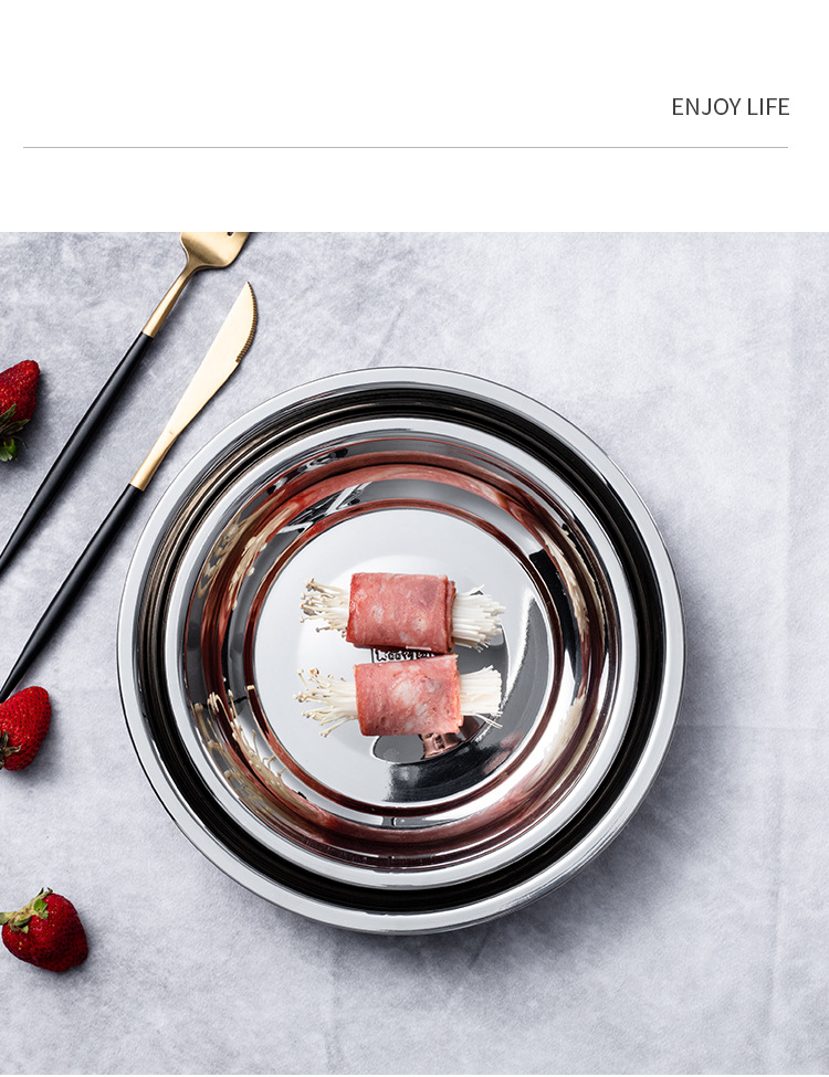 홍파 304 한국 스테인리스 디스크 두껍게 16-26cm 가정용 바베큐 생선 접시 과일 접시 다목적 딥 플레이트