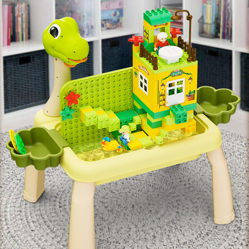 2 대 1 전기 공룡 투영 그림 학습 테이블 창조적 인 DIY 빌딩 블록 테이블 부모-자식 대화 형 게임 테이블