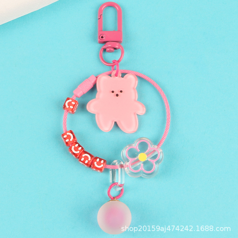 새로운 아크릴 곰 열쇠 고리 펜던트 크리 에이 티브 귀여운 스마일 편지 화환 캔디 하트 볼 액세서리 가방 장식