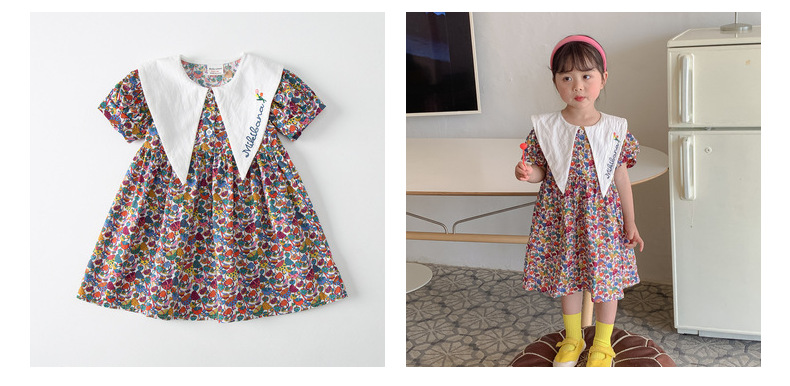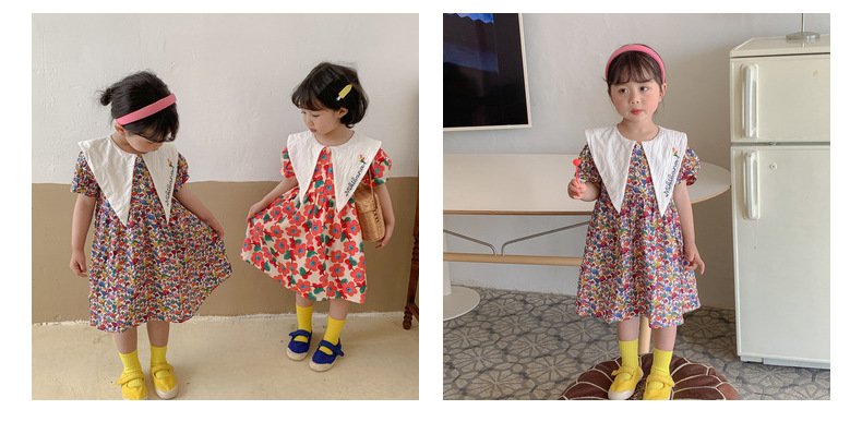 Duducream 한국 아동복 큰 옷깃 수 놓은 소녀 원피스 어린이 꽃 반팔 치마스토어 가기