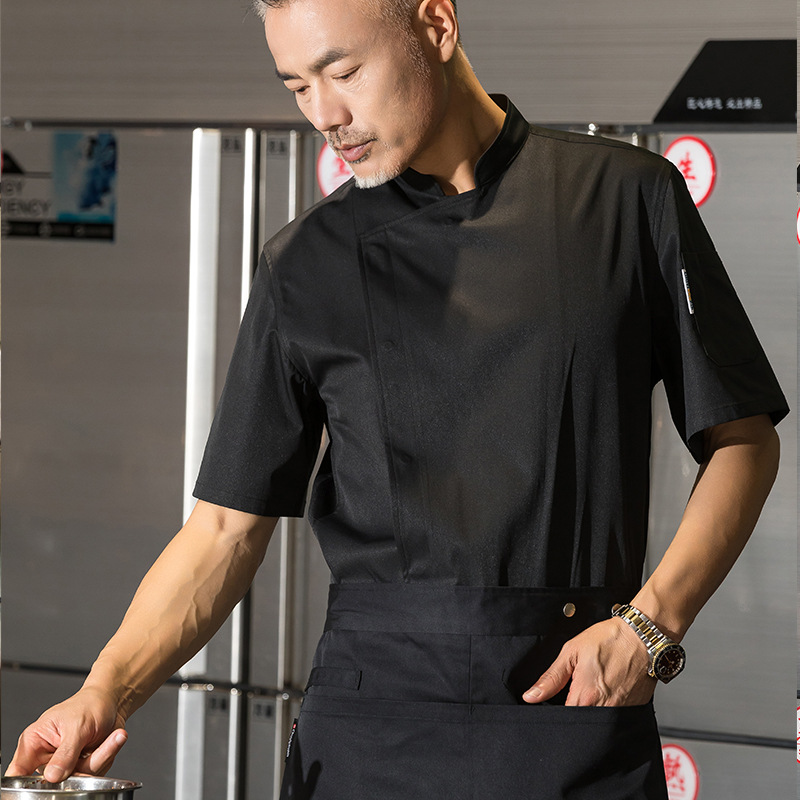 호텔 요리사 의류 반팔 여름 매점 흰색 후면 주방 작업복 남성 및 여성용 통기성 땀 흡수 얇은 작업복