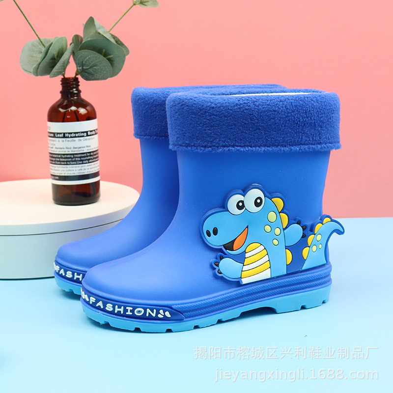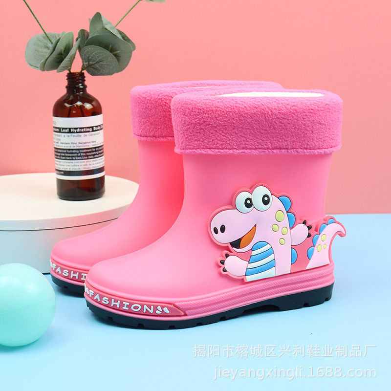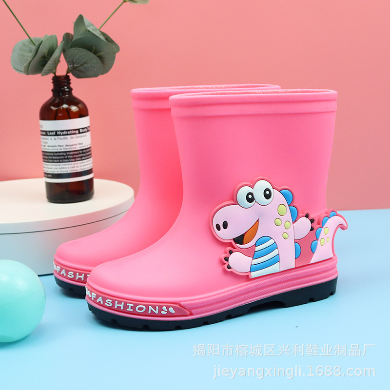 소년을위한 아기 장화 초등학생을위한 귀여운 공룡 물 신발 소녀를위한 고무 신발 미끄럼 방지 경량 어린이 중대형 어린이를위한 장화스토어 가기