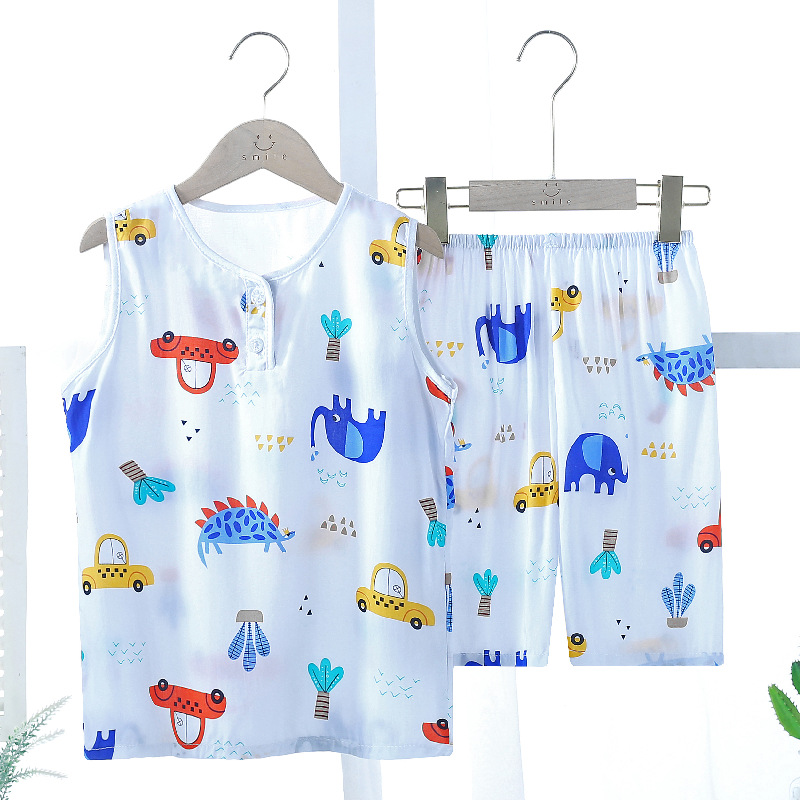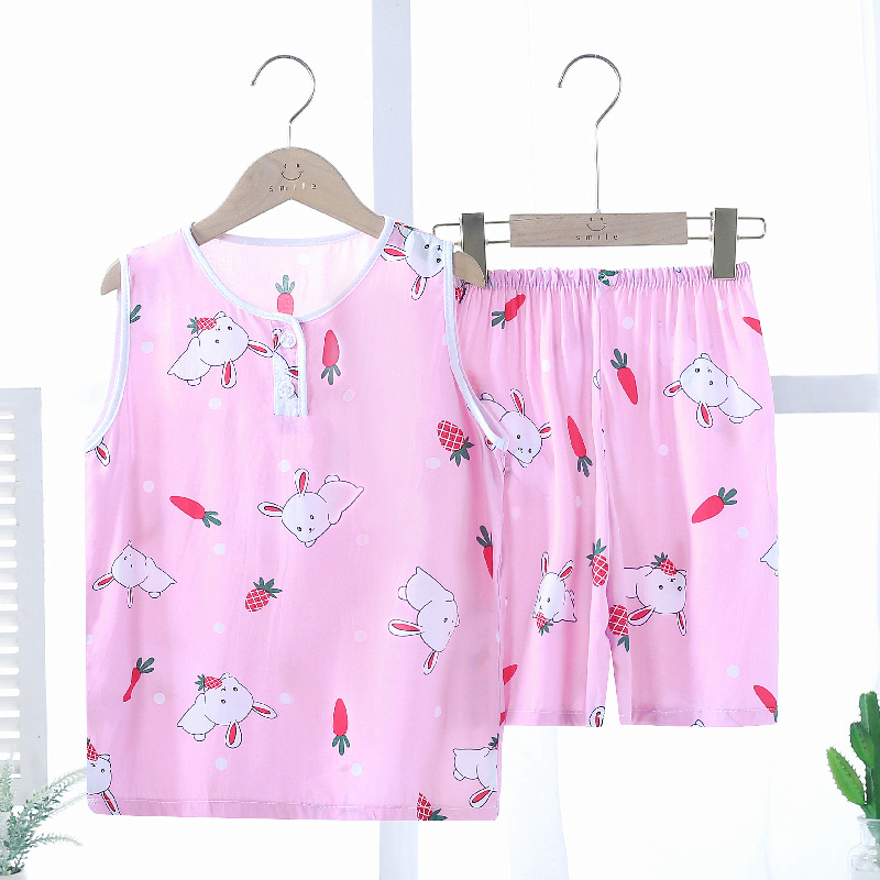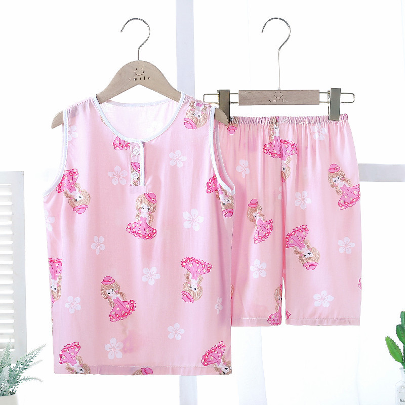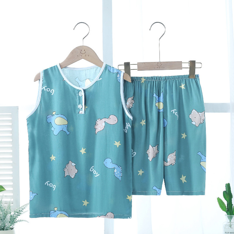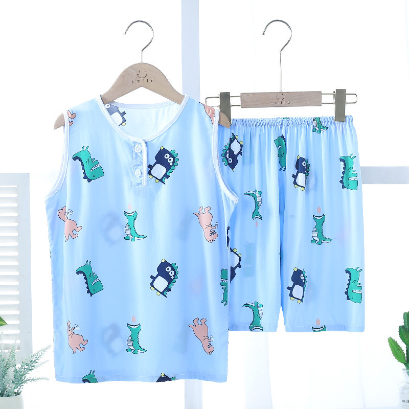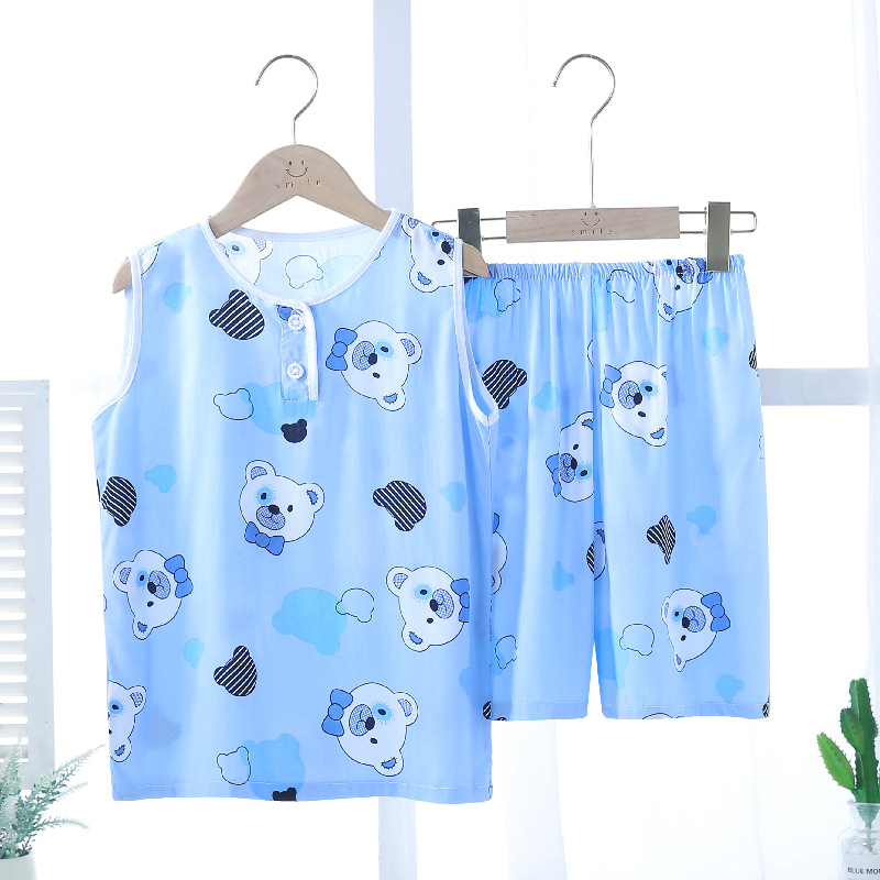 여름 어린이 잠옷 조끼 반바지 귀여운 만화 가정 옷 세트 소년 소녀 얇은 에어컨 옷 도매스토어 가기