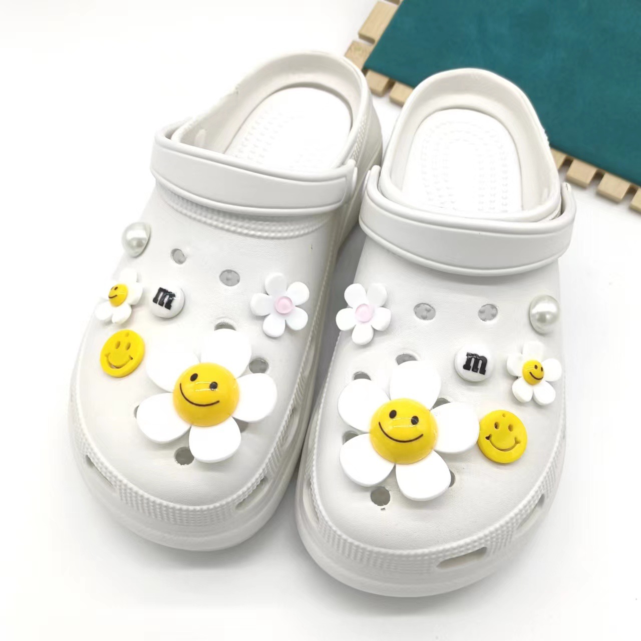 小红书推荐热卖亚克力笑脸太阳花鞋扣套装白色鞋花洞洞鞋鞋扣配饰