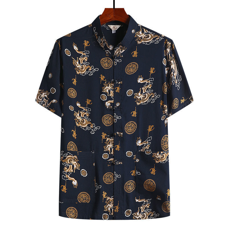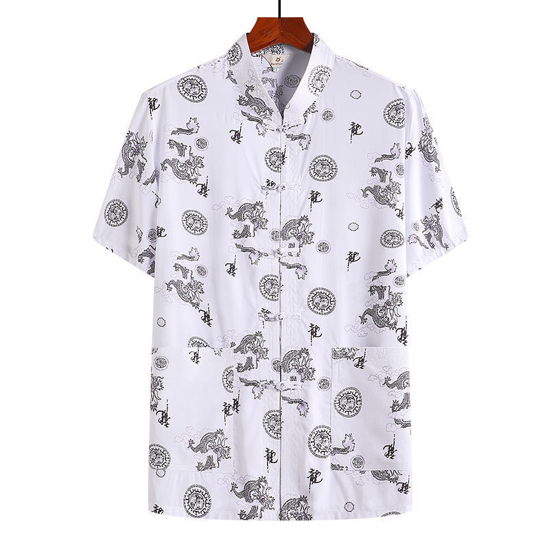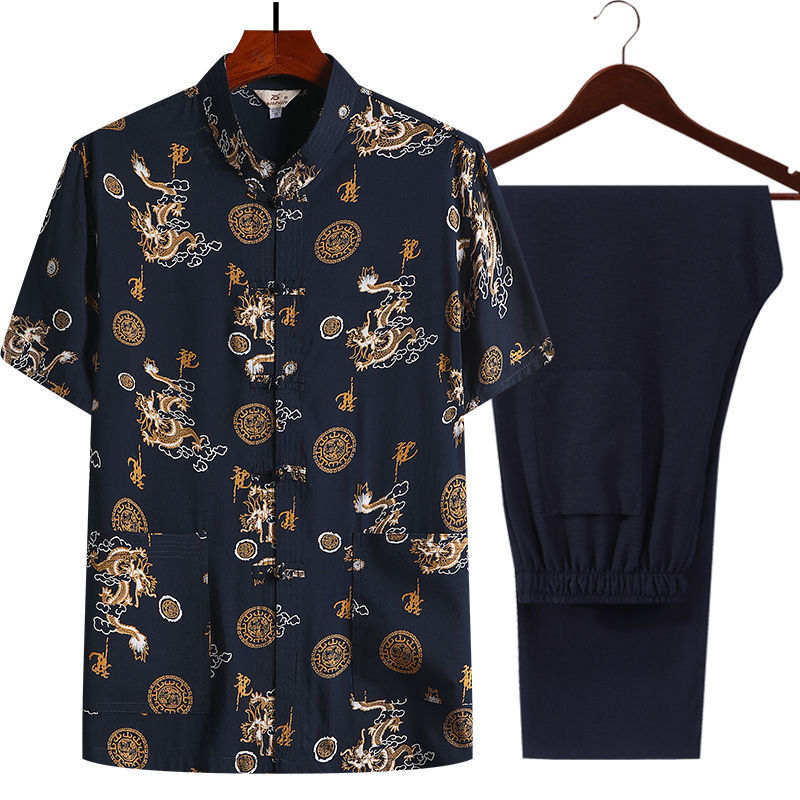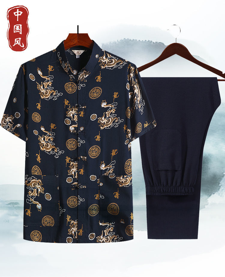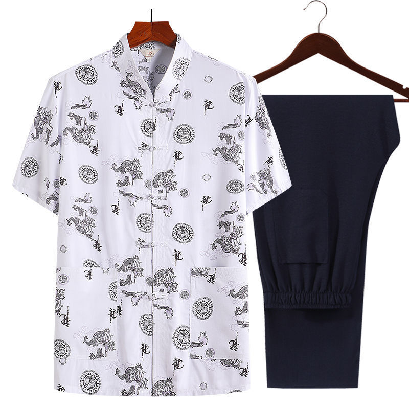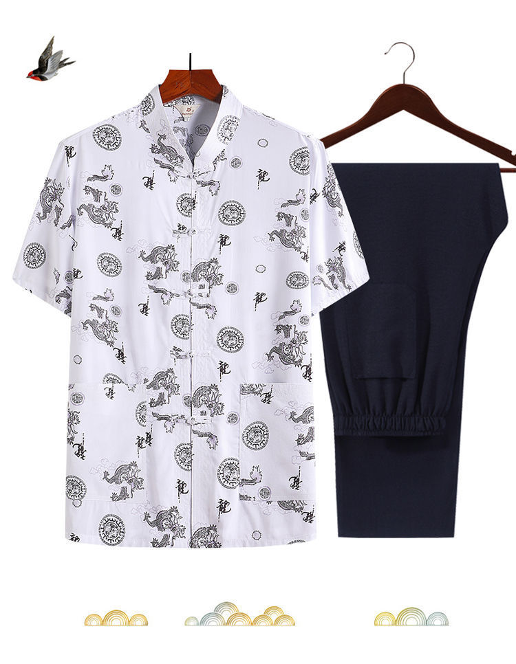 여름 중년 및 노인 남자의 면 실크 반팔 탑 탱 세트 얇은 마오 세트 반팔 남자의 느슨한 캐주얼 아빠의 여름 옷
