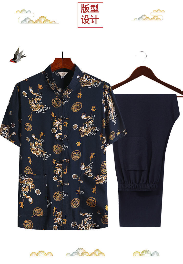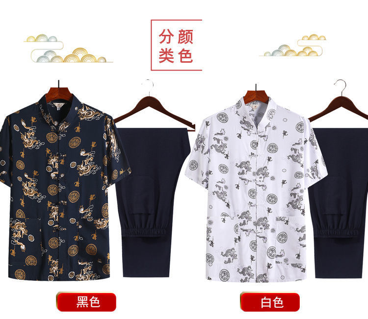 여름 중년 및 노인 남자의 면 실크 반팔 탑 탱 세트 얇은 마오 세트 반팔 남자의 느슨한 캐주얼 아빠의 여름 옷스토어 가기